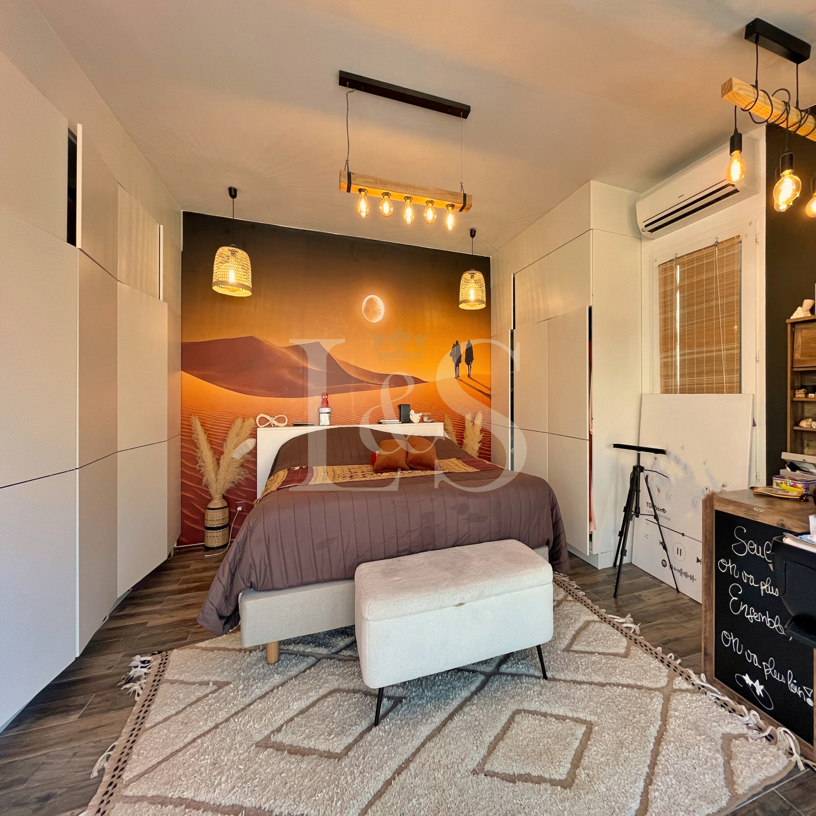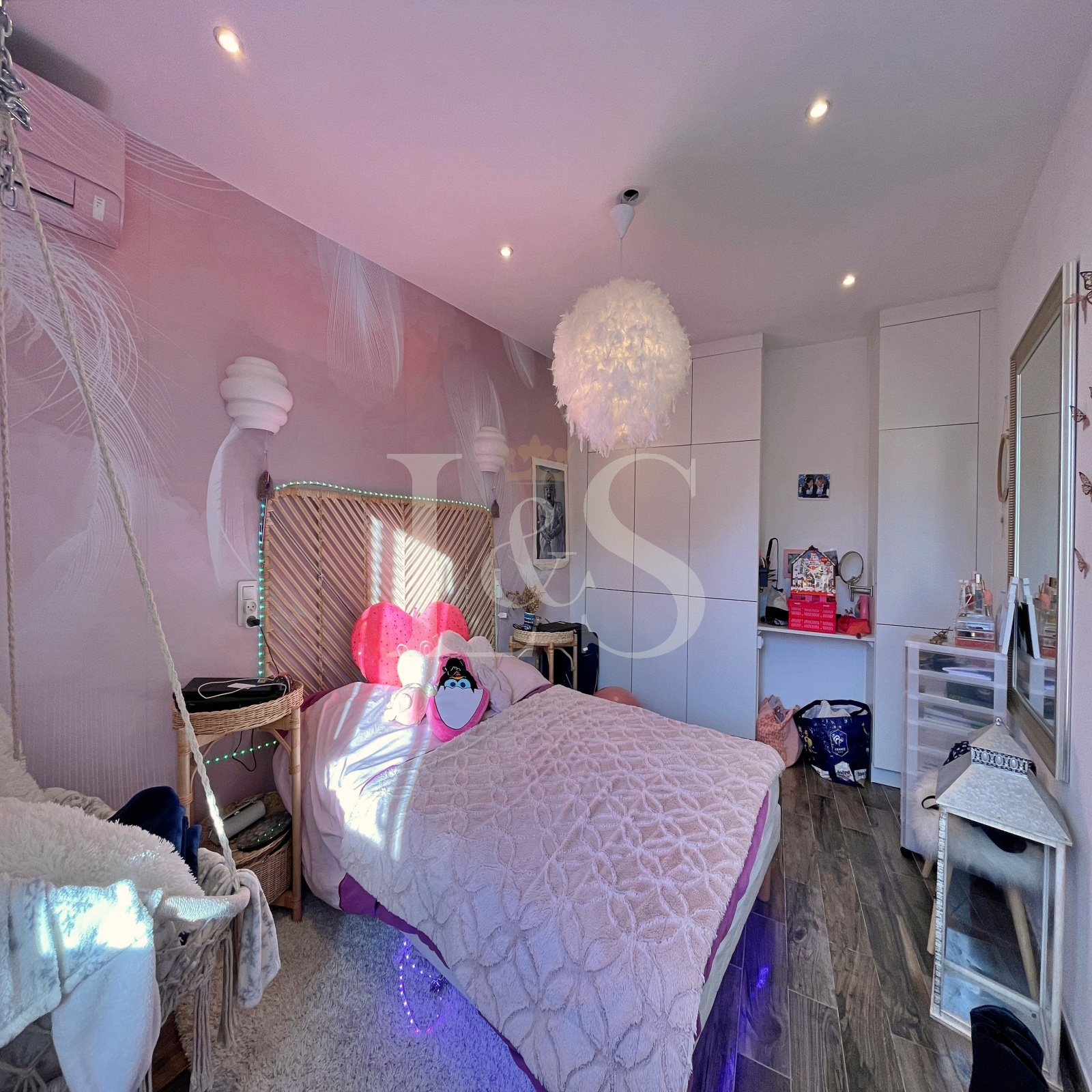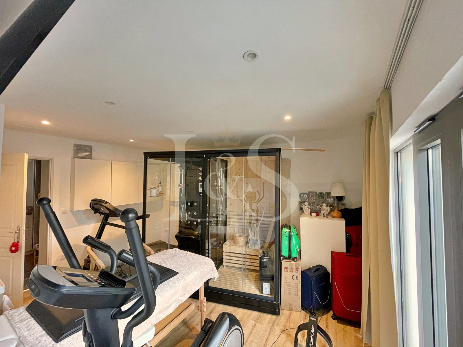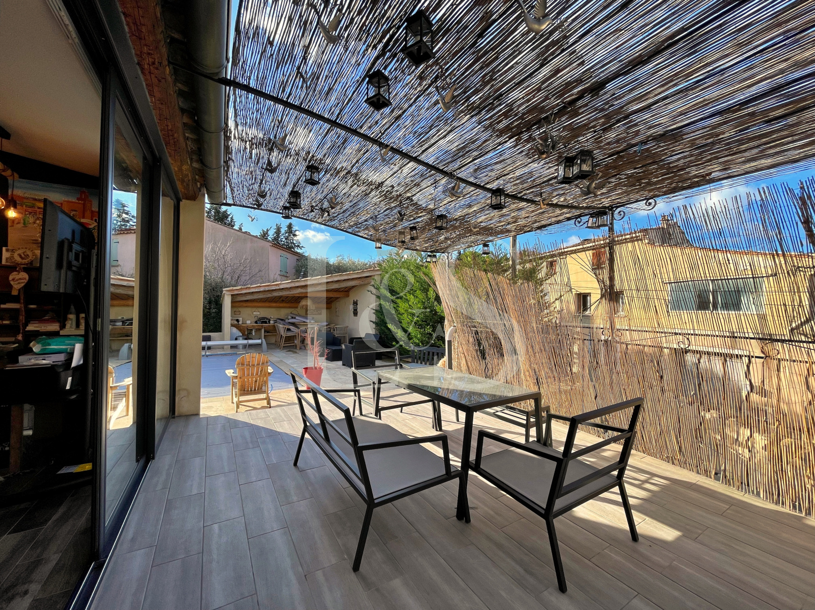 À l’extérieur, chacun pourra profiter d’une terrasse, d’une cour, d’une piscine sécurisée de 6x4m avec volet roulant, d’une cuisine d’été et d’un abri de jardin.