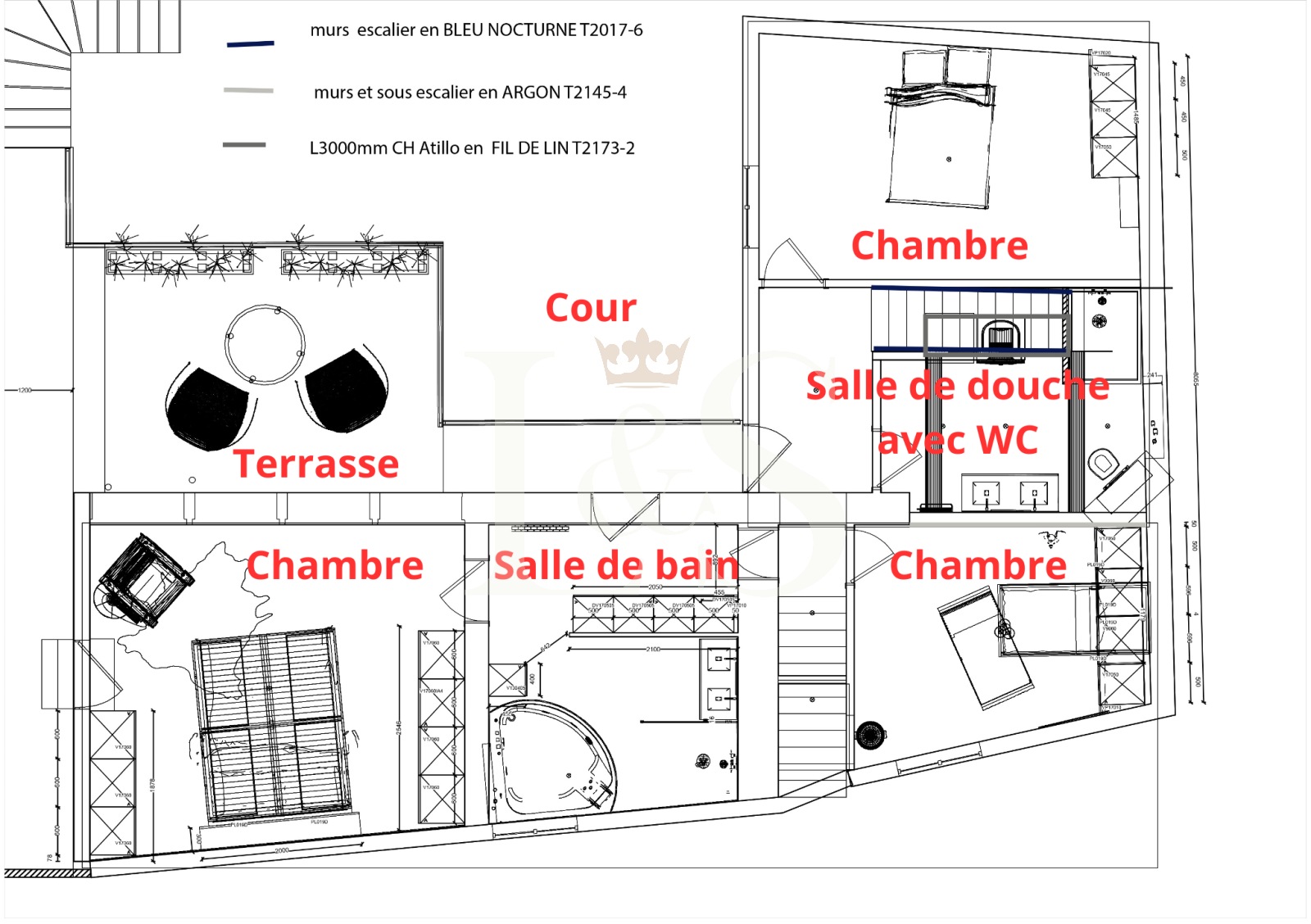sous pente (surface totale =30m²)
