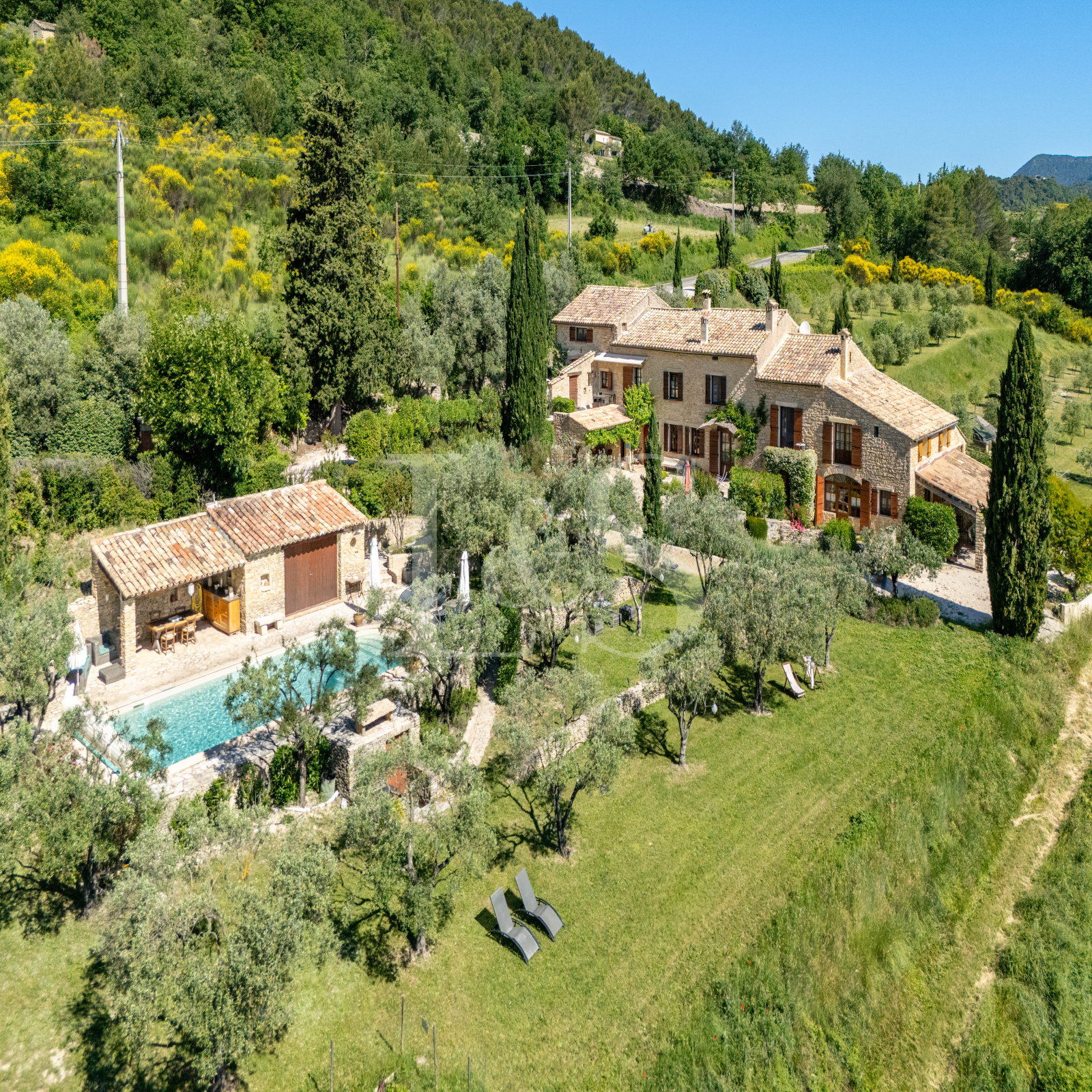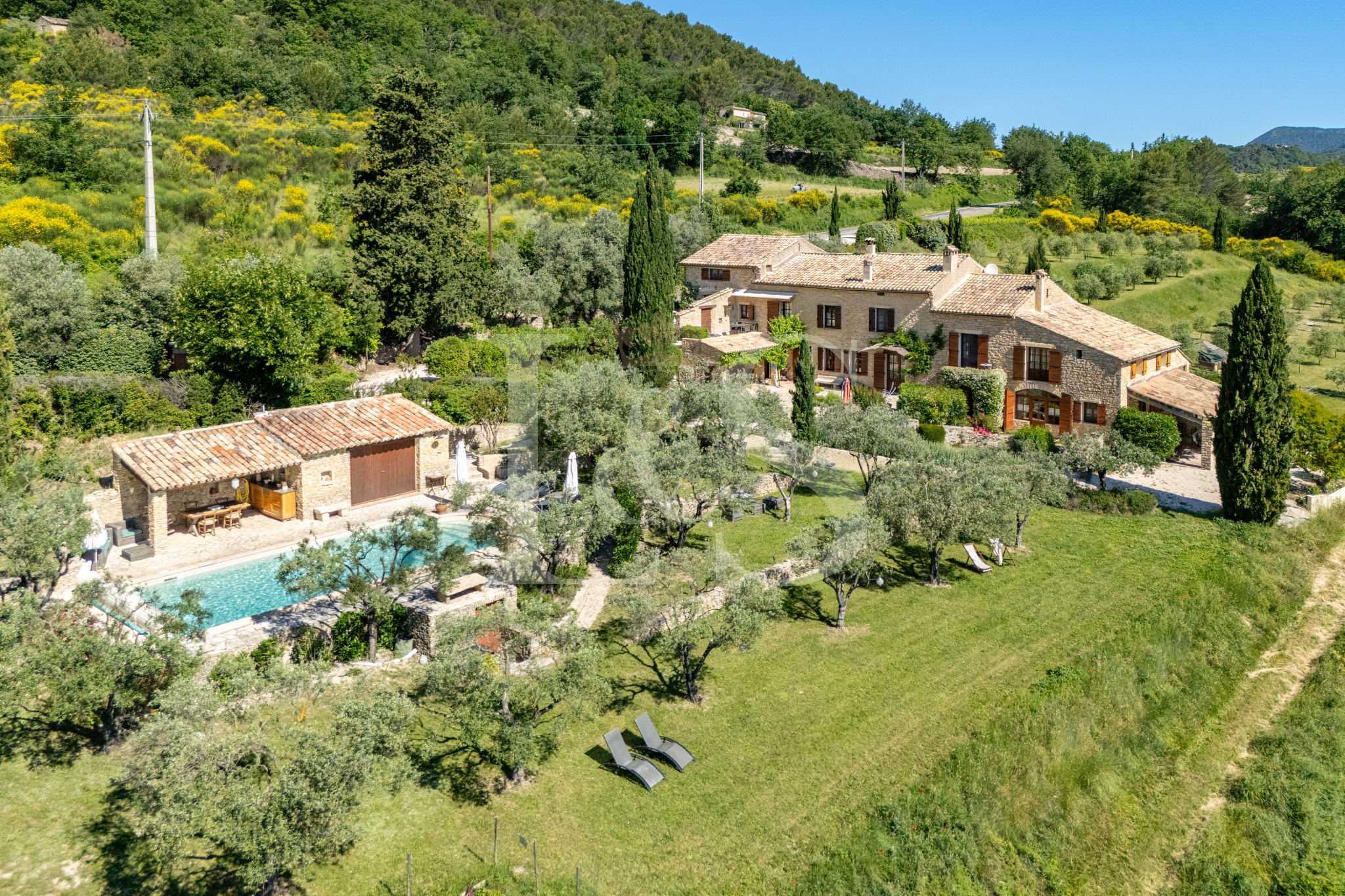Implantée sur un terrain paysager de près de 7 700 m², la propriété bénéficie de plusieurs espaces de détente, d’une superbe piscine avec vue panoramique sur le mont Ventoux, et d’une intimité totale sans aucun vis-à-vis.