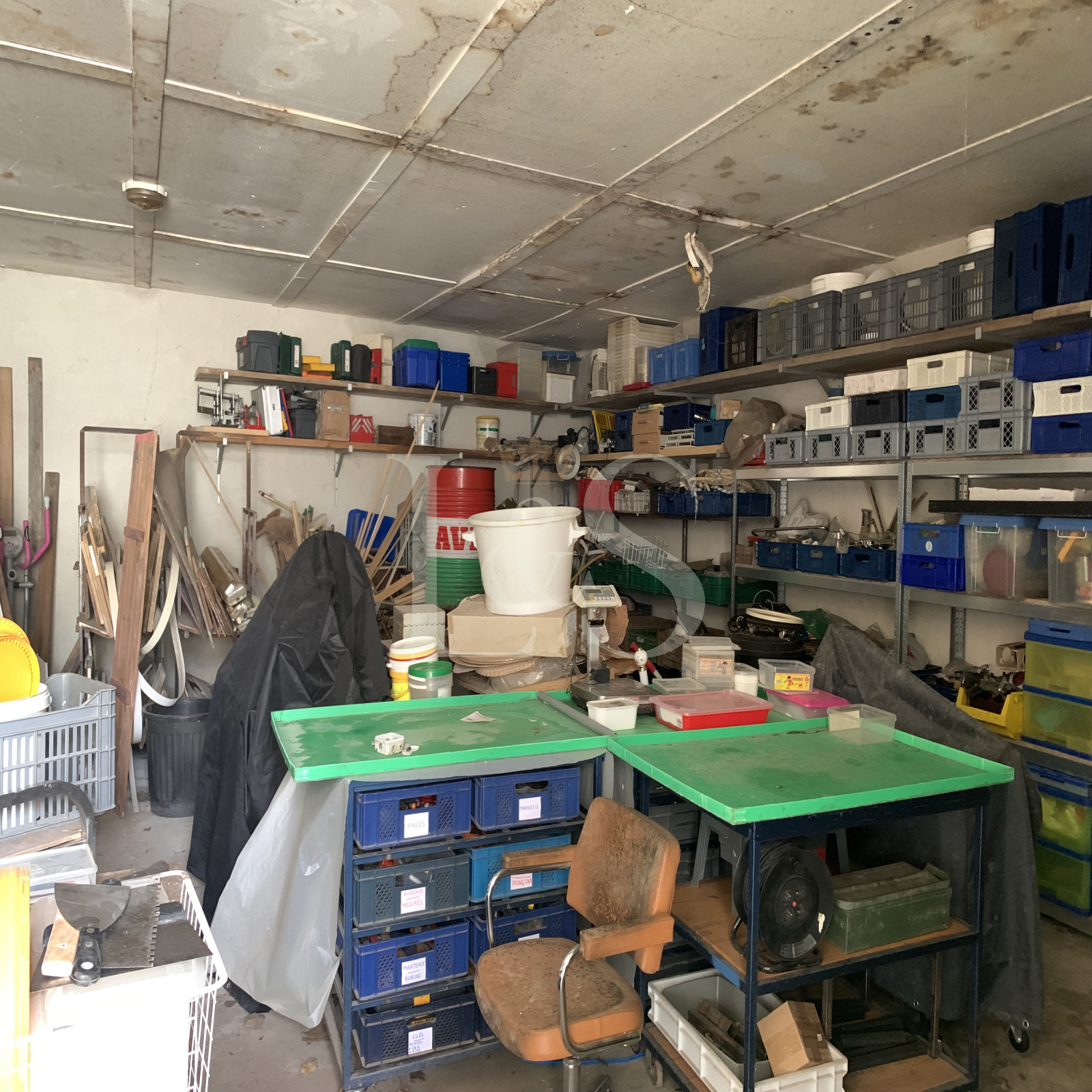 Au rez-de-chaussée, deux grands garages et des espaces de débarras offrent des opportunités variées. À l’arrière, un garage supplémentaire avec espace de stockage indépendant complète l’ensemble.