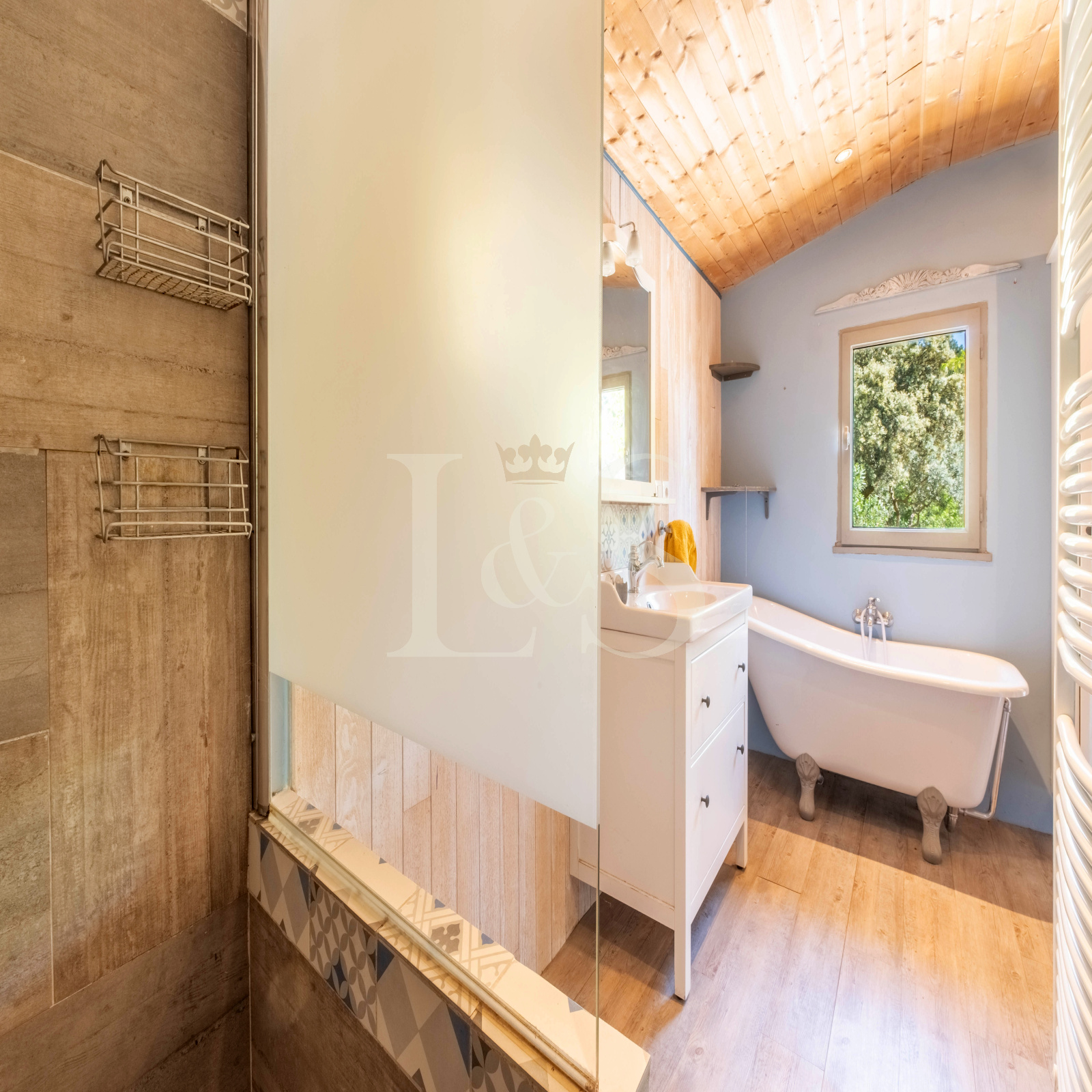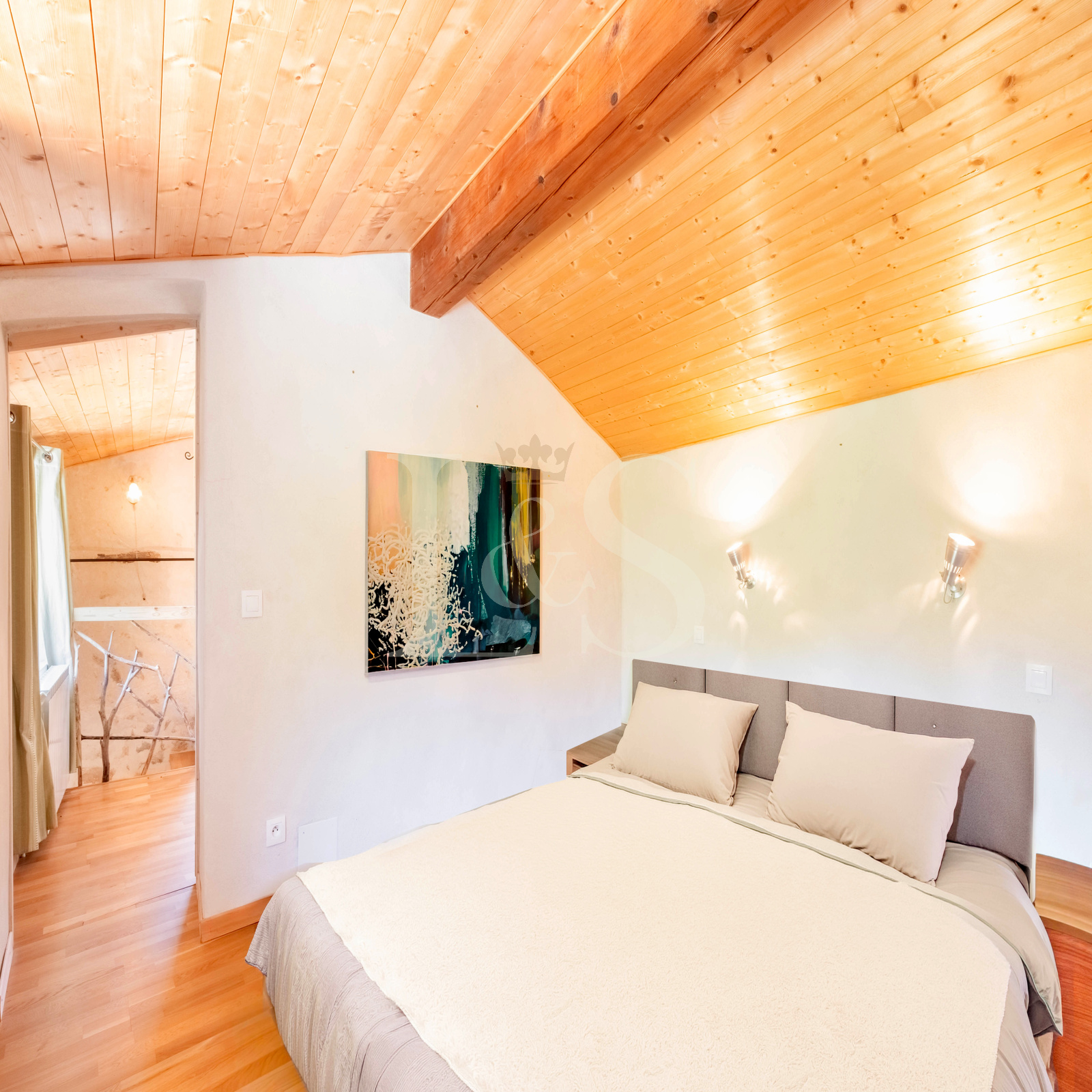 Prestations: chauffage central au gaz, complété par une cheminée avec insert et une climatisation réversible, garantissant un confort thermique optimal tout au long de l’année ; double vitrage ; eau de ville ; assainissement aux normes ; fibre optique...