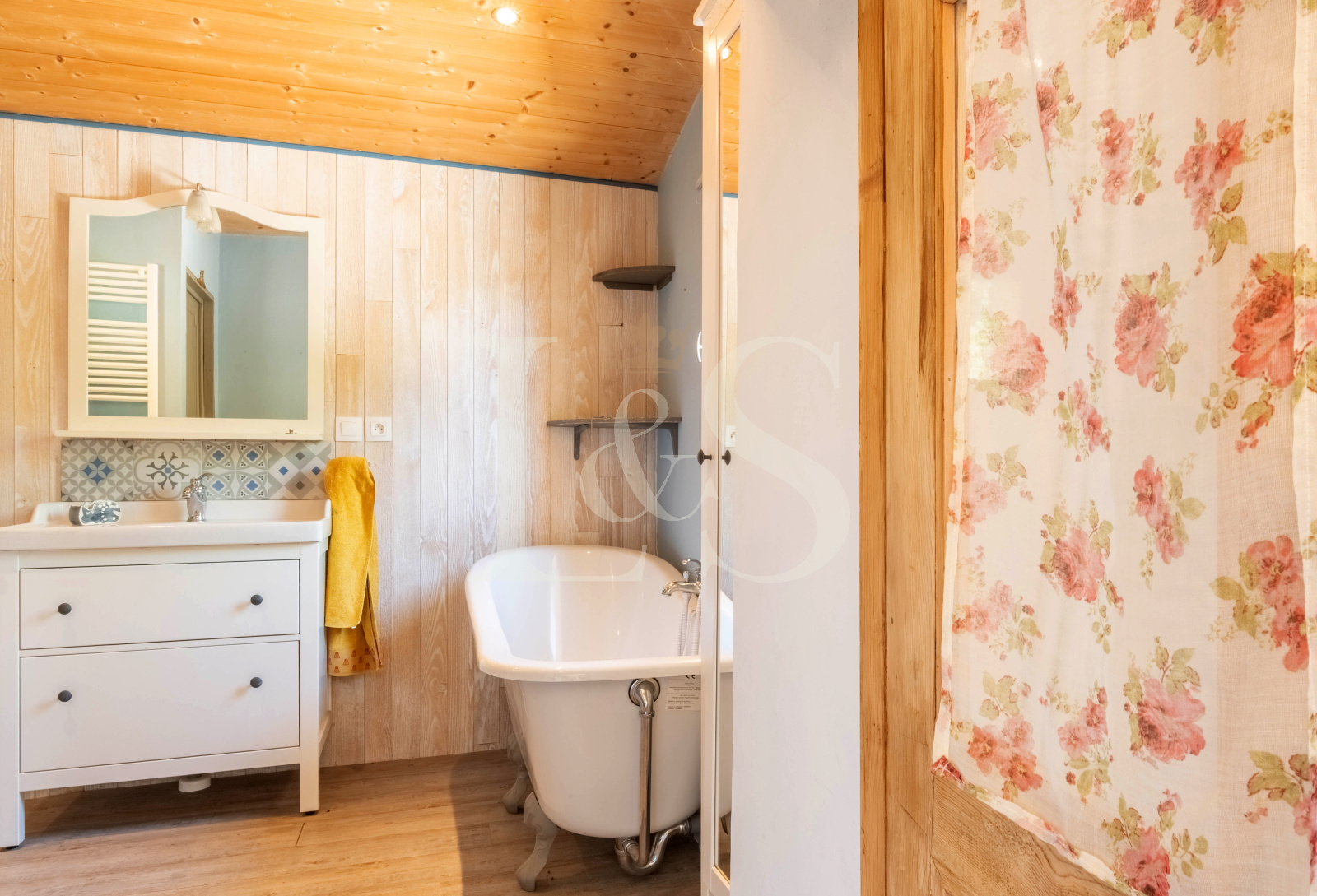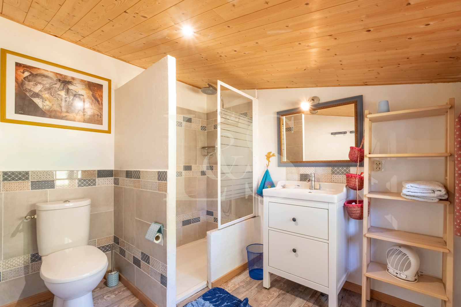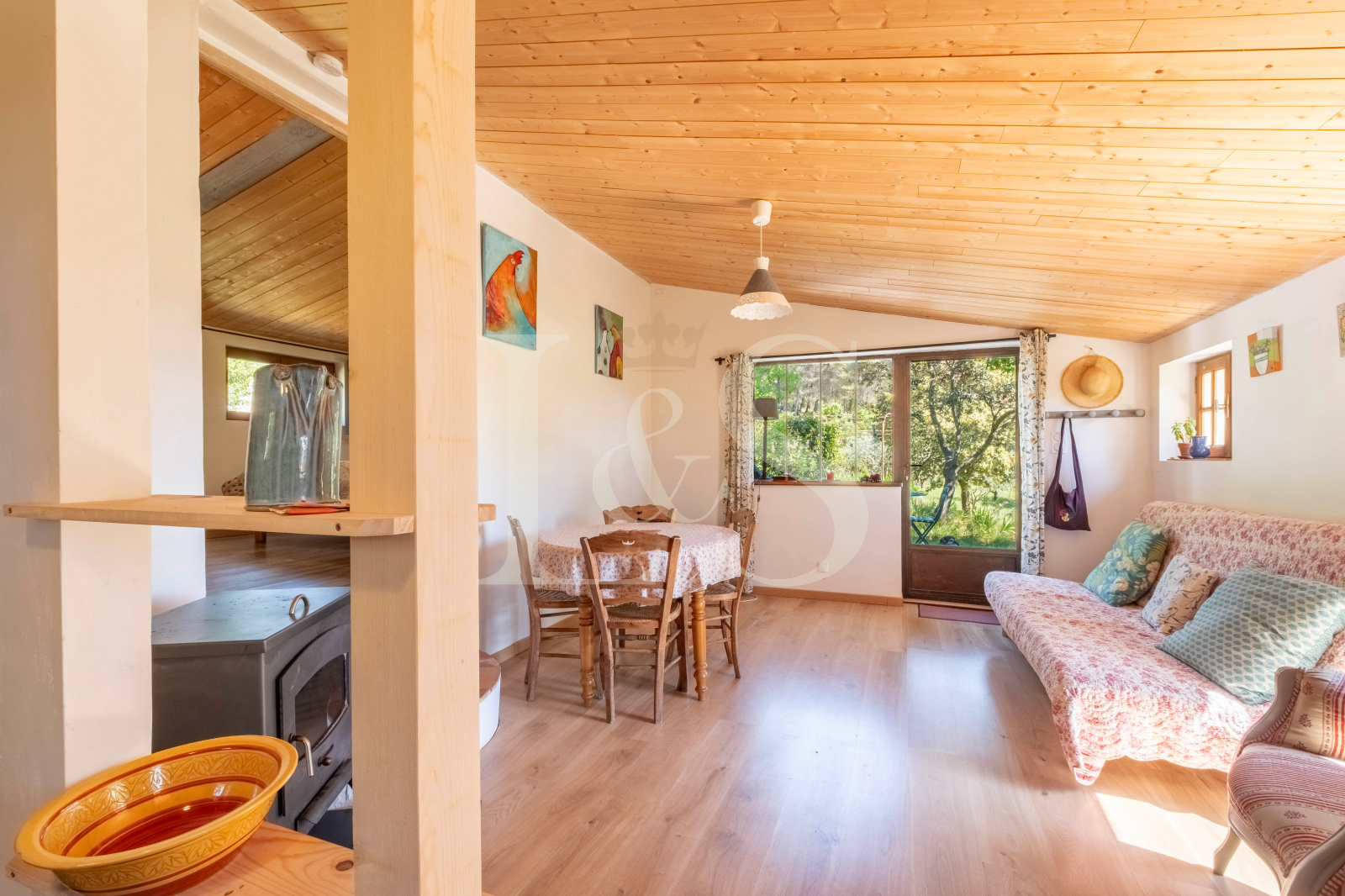 La propriété dispose également de dépendances aux multiples atouts. Un gite d’environ 45 m², entièrement aménagé, comprend un espace de vie avec salon, salle à manger et cuisine, ainsi qu’une chambre avec salle d’eau et WC. Actuellement exploité en location saisonnière, il bénéficie d’excellents retours voyageurs, témoignant de l’attrait indéniable du lieu et de son environnement exceptionnel. Une seconde dépendance de 17 m² est dédiée à un usage d’atelier et de rangement, apportant un espace supplémentaire appréciable.