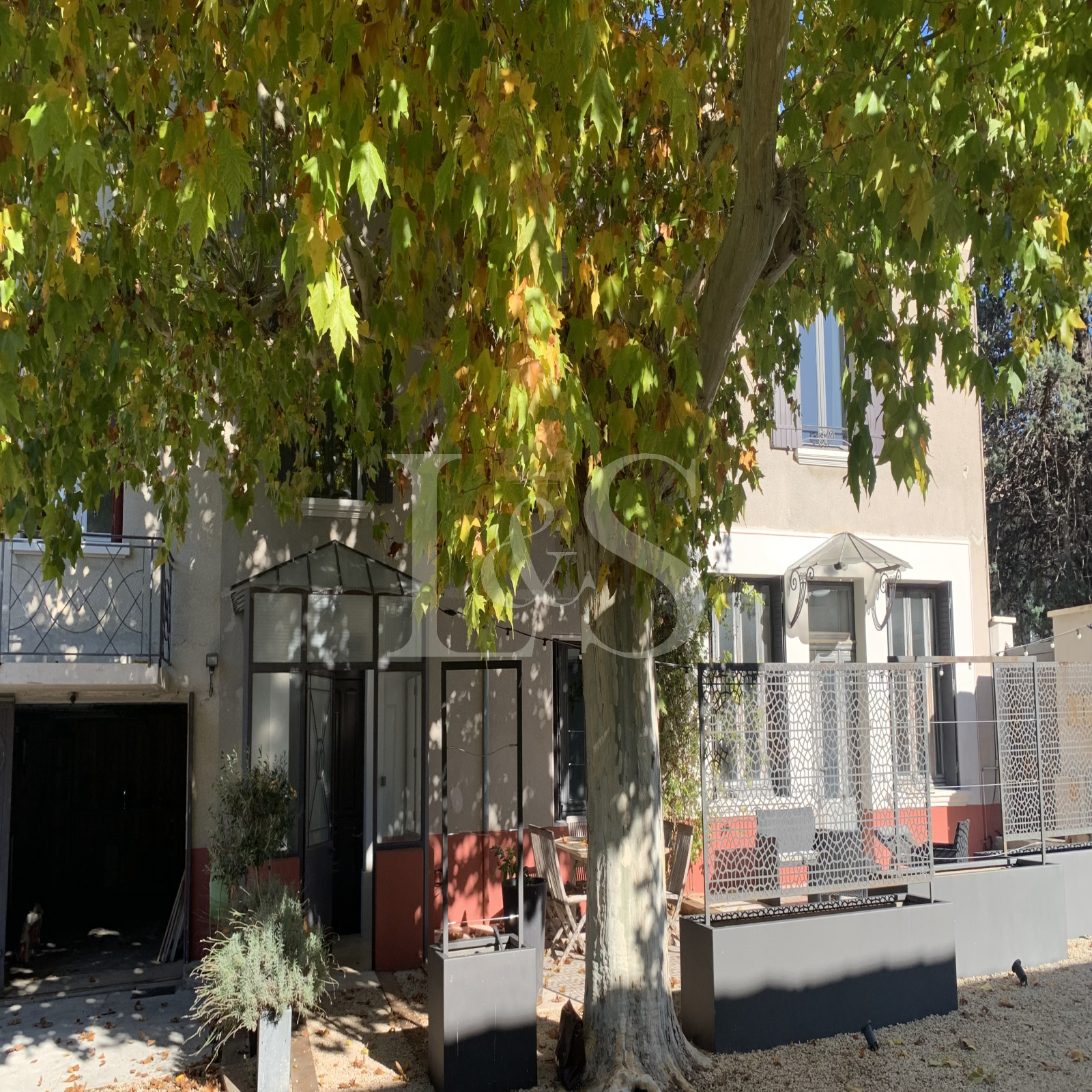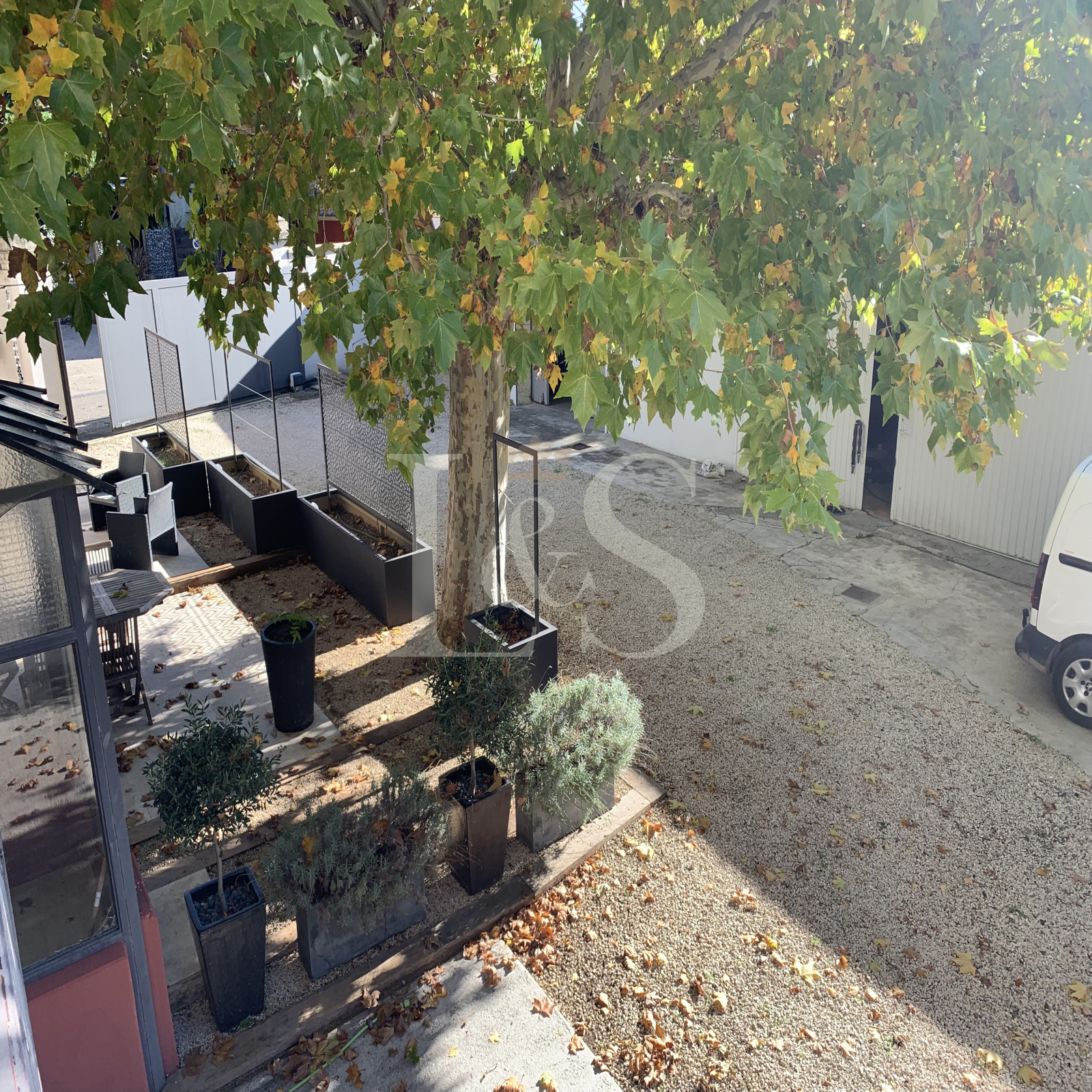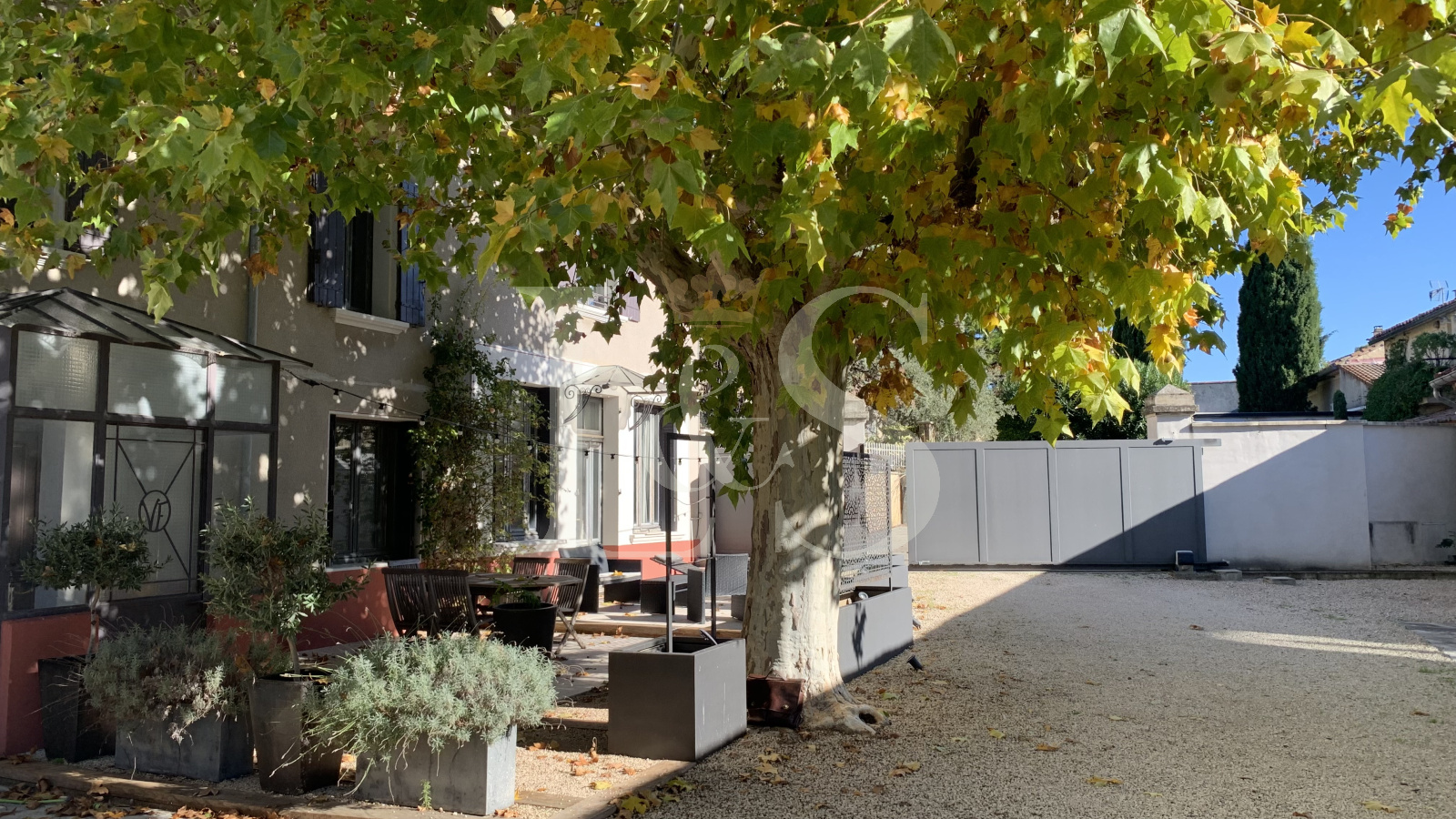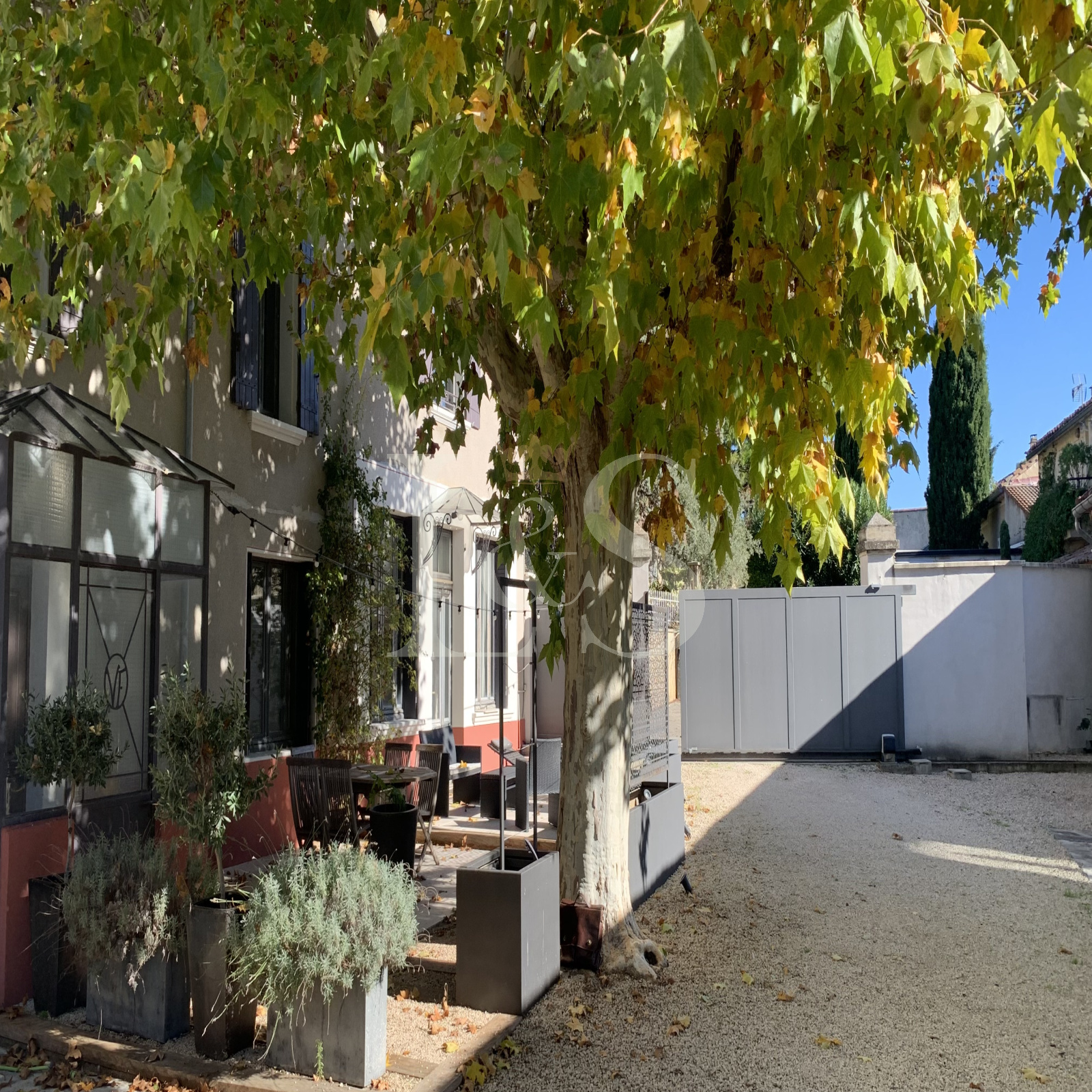 Belle cour close avec portail électrique.