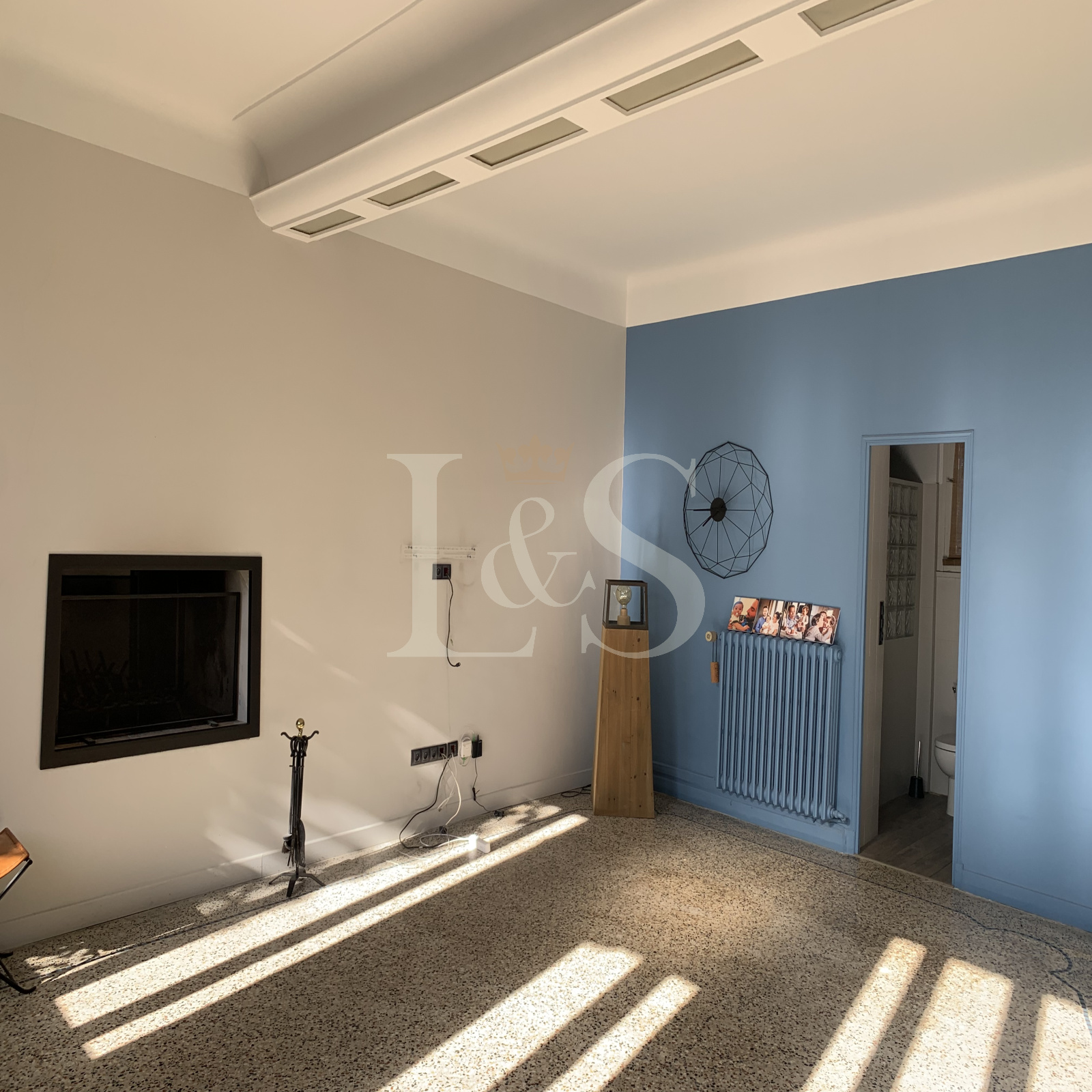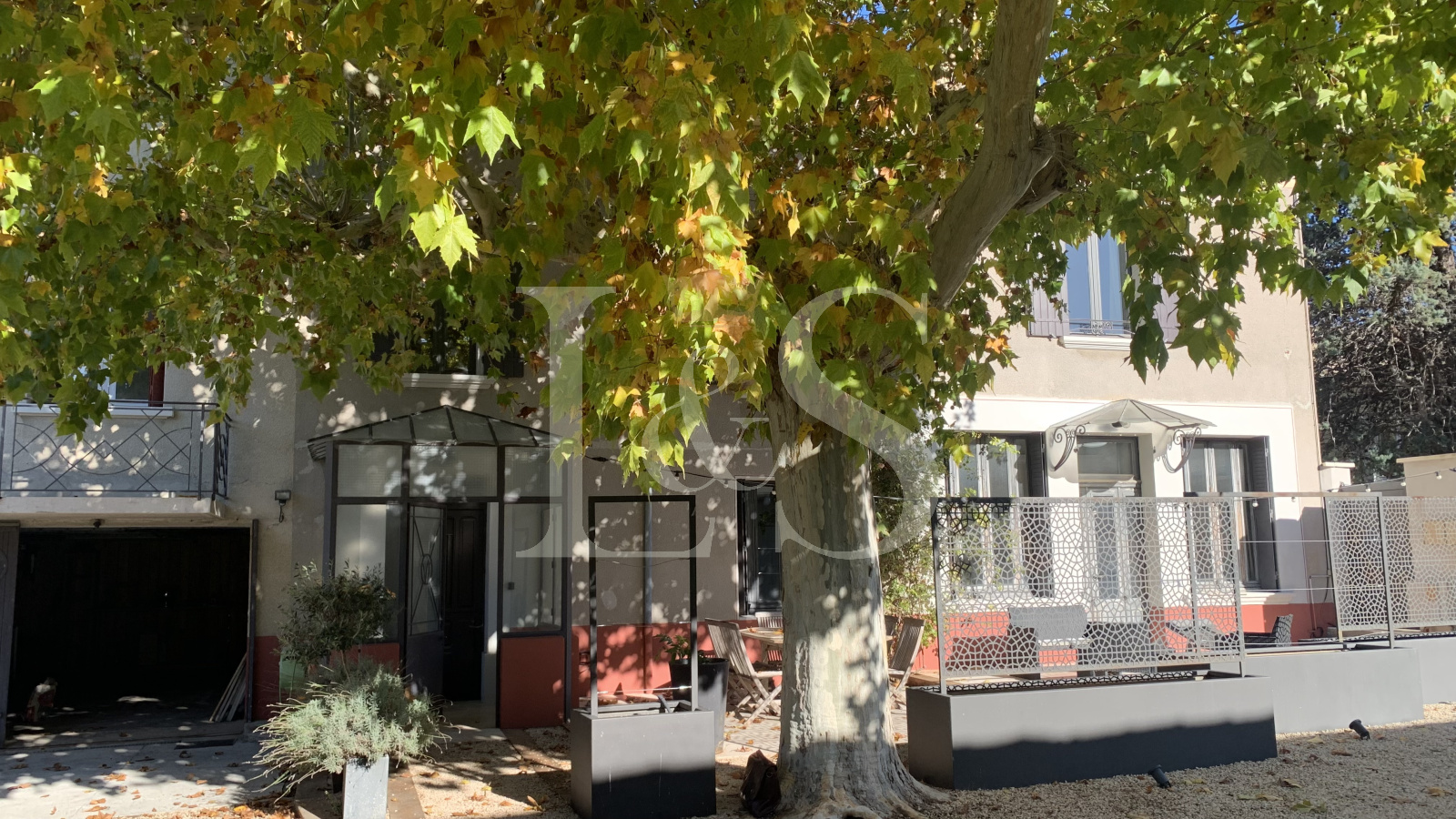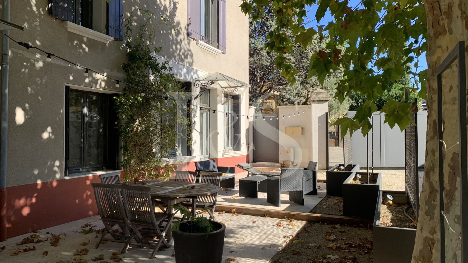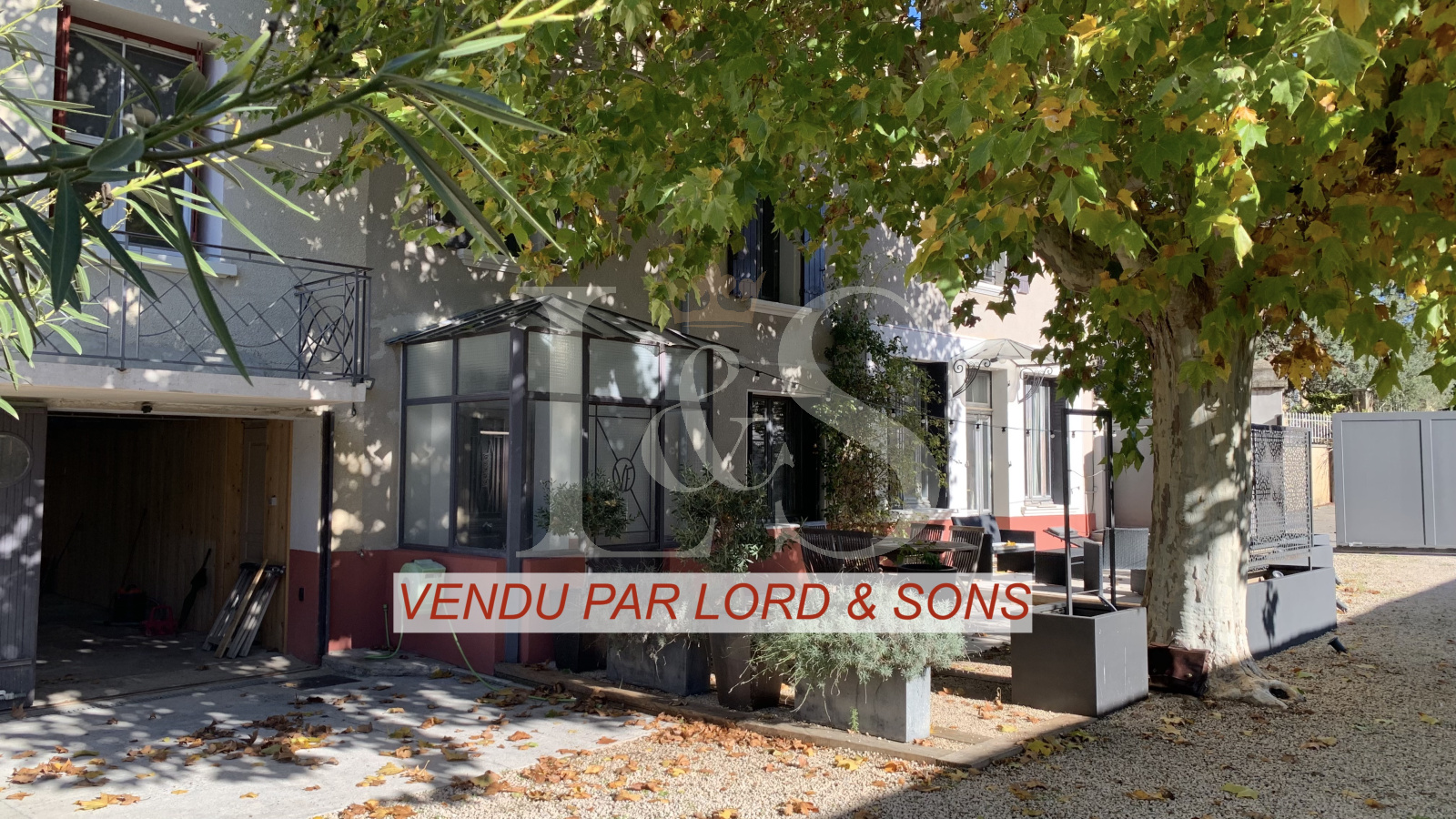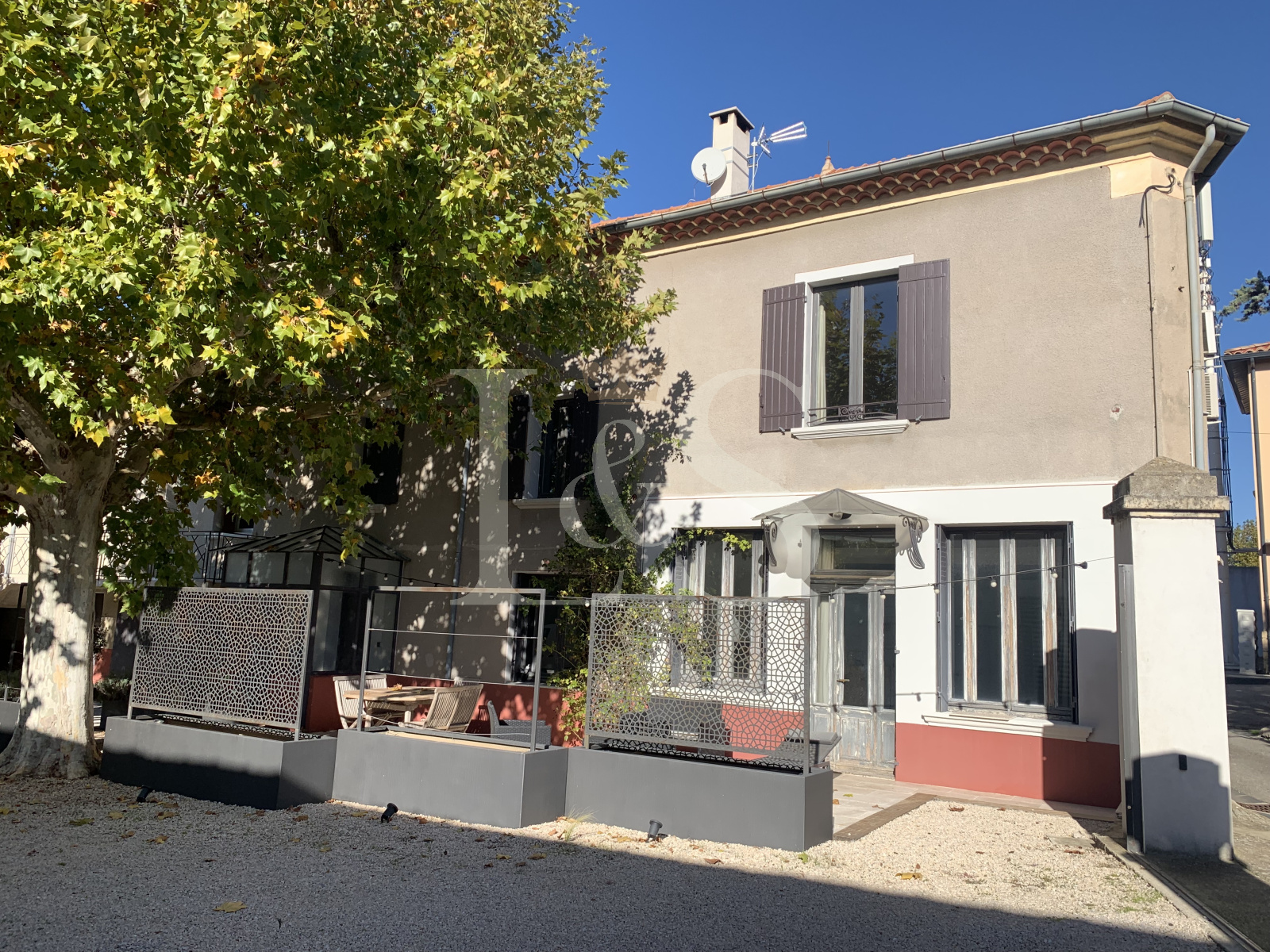 Belle cour close avec portail électrique.
