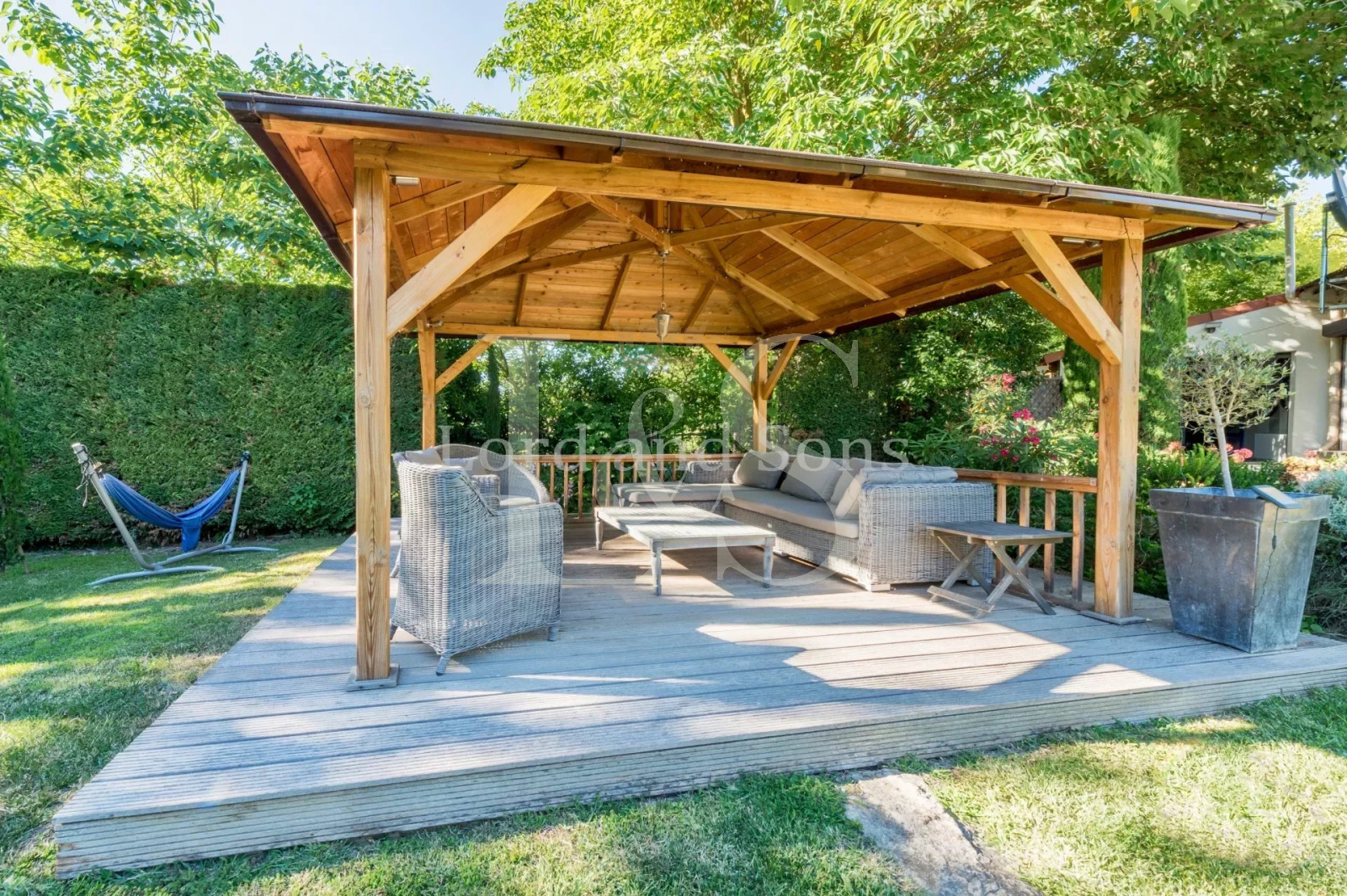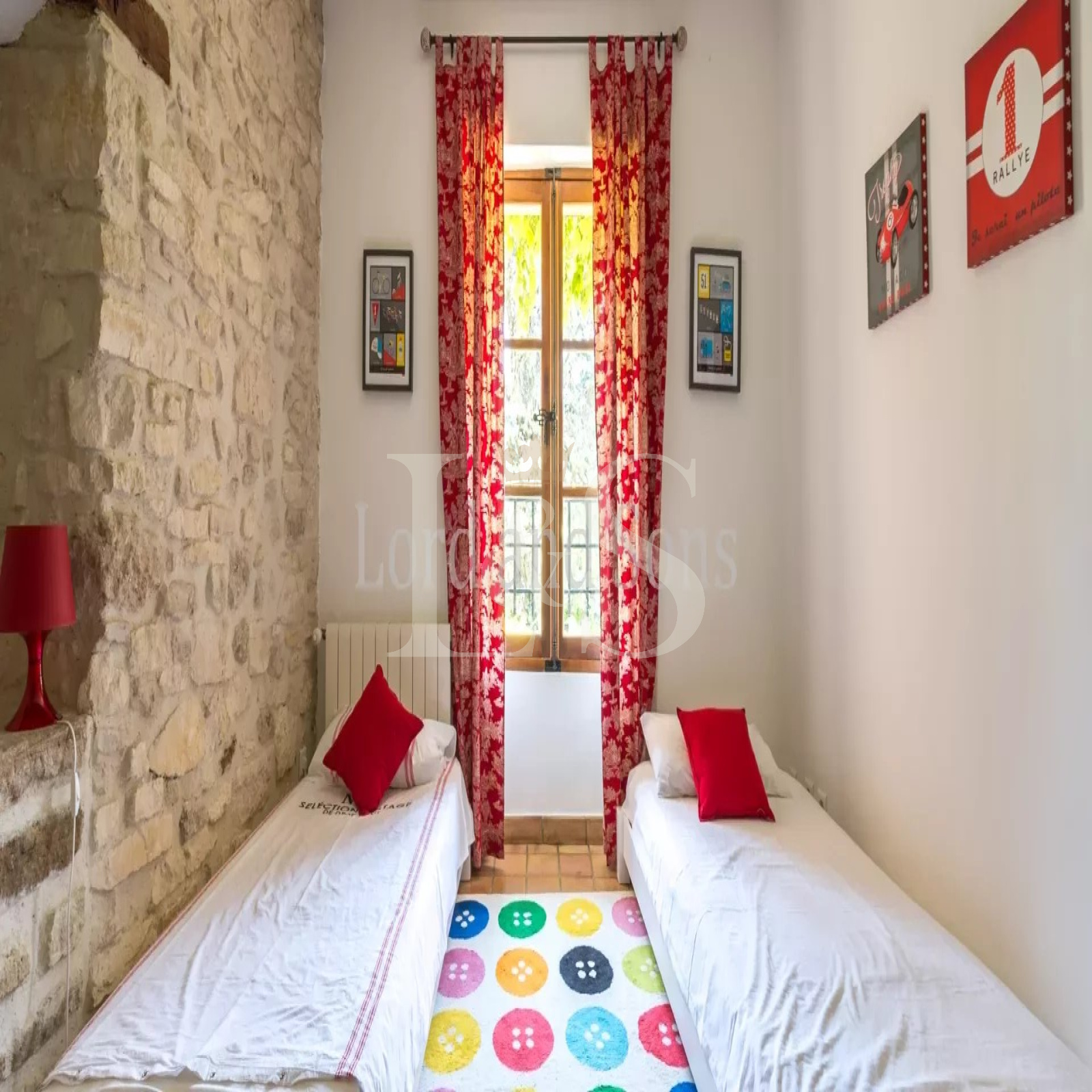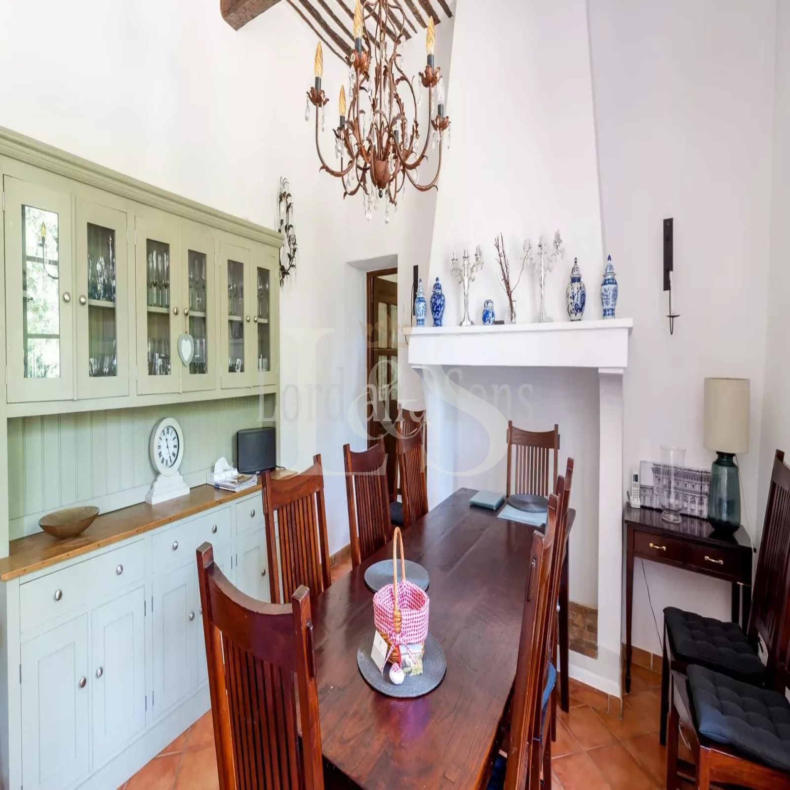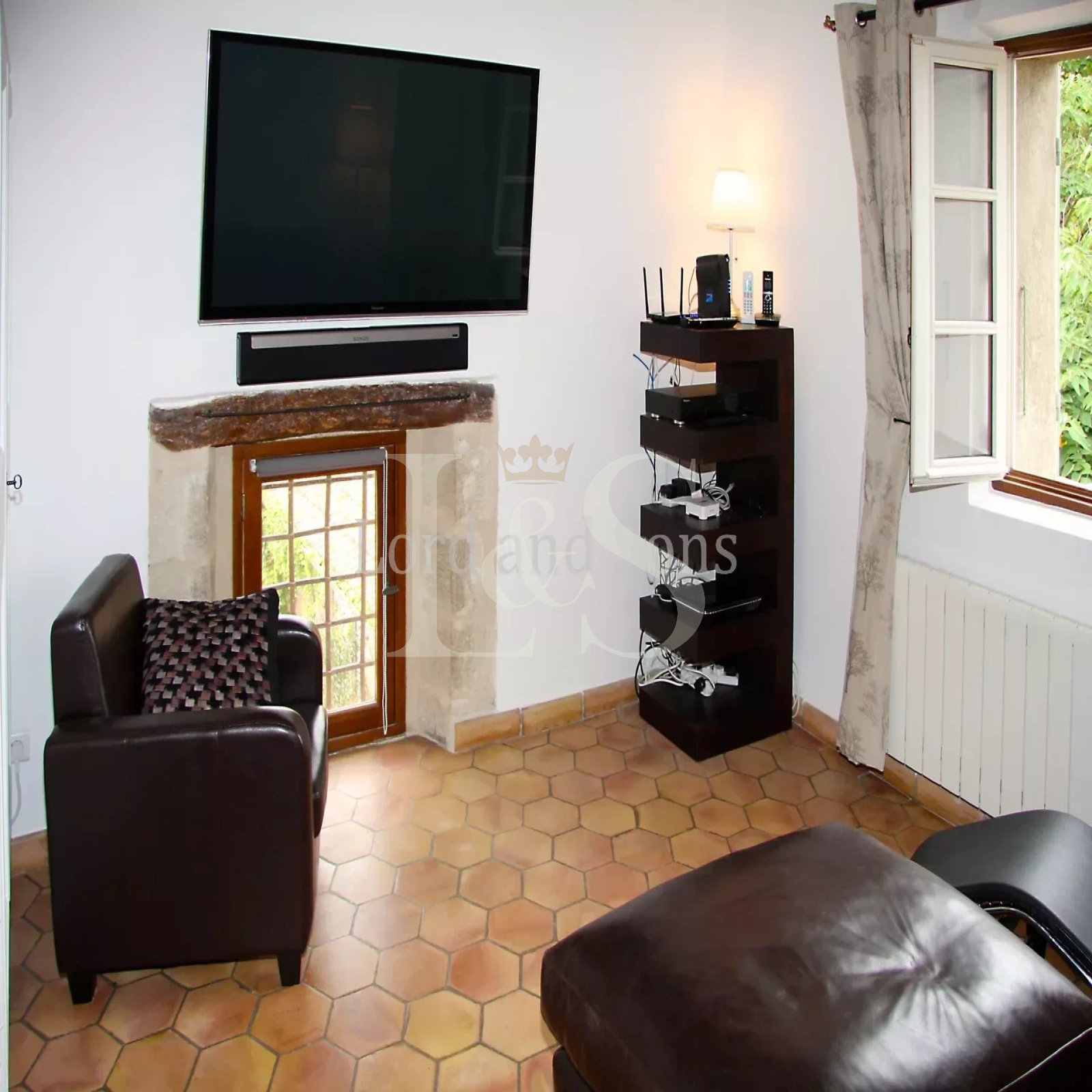 Exclusivité. Provence, Vaucluse, sud Ventoux, en campagne de Carpentras. Lord and Sons vous propose la vente de cette superbe propriété, partie d'un ancien couvent datant du 9ème siècle, un véritable oasis de calme et de verdure situé dans les faubourgs de la capitale du Comtat Venaissin. Elle a été entièrement rénovée et offre des prestations remarquables. La maison principale se compose comme suit: - au RDC: hall d'entrée, salle à manger avec cheminée, cuisine toute équipée avec accès direct à une terrasse couverte, salon, salle de bains avec wc. - A l'étage, le palier dessert une chambre parentale, un salon, une salle de bains avec toilettes et deux autres chambres partageant une salle de douche avec toilettes. La maison d'amis (ou gite) comprend: un séjour avec une cuisine entièrement équipée, 2 chambres, une salle de bains, un wc séparé, une buanderie et une cave à vin. A l'extérieur, le magnifique jardin paysager et le parc arboré sont agrémentés d'une piscine 12mx5m chauffée (filtration au sel), d'un adorable gazebo, de 2 terrasses couvertes, d'un boulodrome et d'un garage. Une très belle propriété, au calme absolu, située à 5 min des commerces et des voies rapides menant à l'autoroute A7, Avignon TGV ou vers le mythique Mont Ventoux.