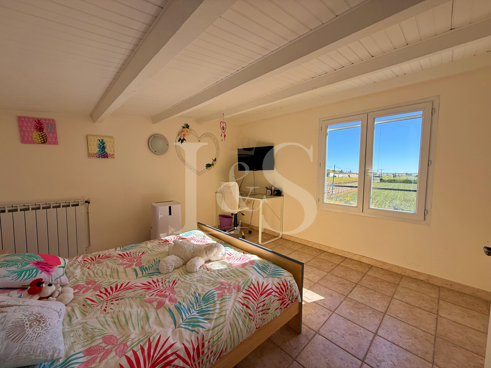 - Une seconde chambre à l’étage avec superbe vue sur les étangs