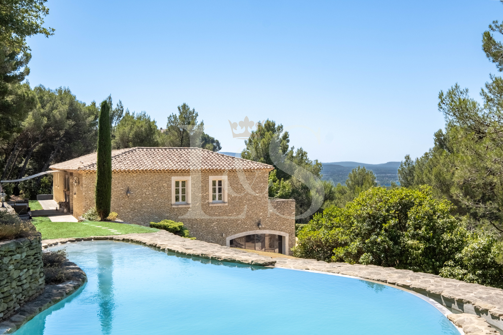 Le terrain en restanques d’environ 6 000 m², entièrement clos, se distingue par son harmonie entre jardin paysager, zone boisée de chênes et de pins, et différentes terrasses propices à la détente. A l'écart, la piscine à débordement de forme libre, avec plages aménagées et terrasse couverte, offre un cadre enchanteur pour profiter des couchers de soleil.