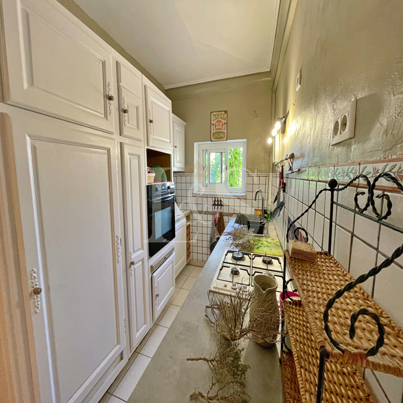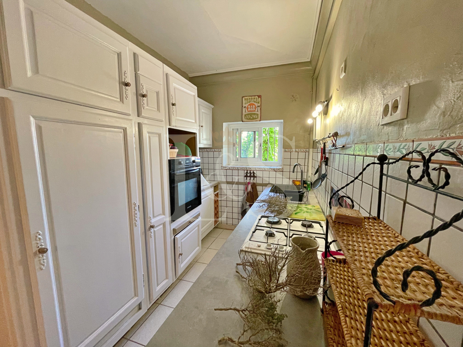 Côté confort : chauffage central au gaz de ville, poêle à bois, climatisation (dasn le séjour), double vitrage, portail électrique et tout-à-l’égout.