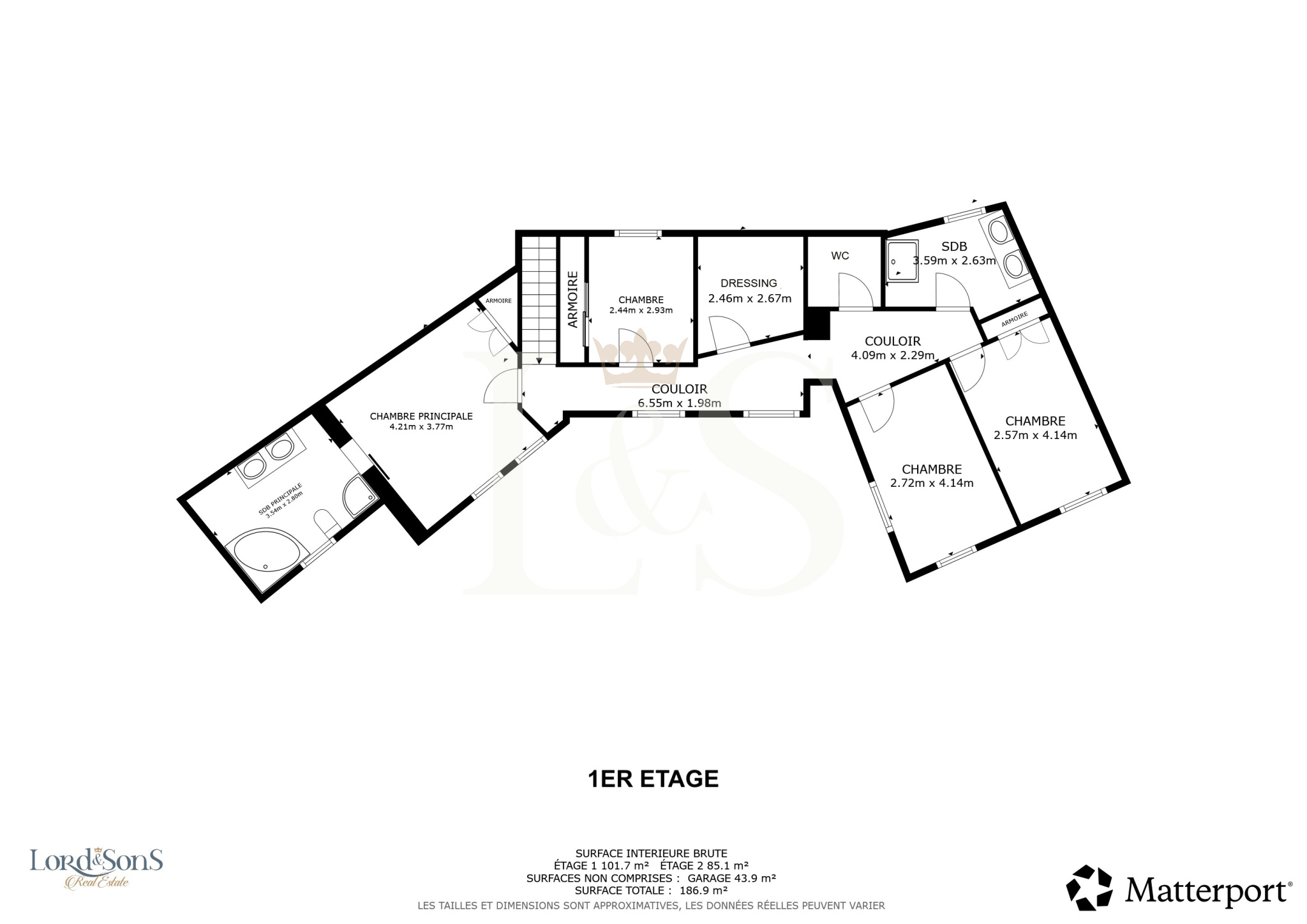 A l’étage, Une suite parentale avec dressing, salle de bains et wc ; 3 autres chambres partagent une salle de douche et wc.
