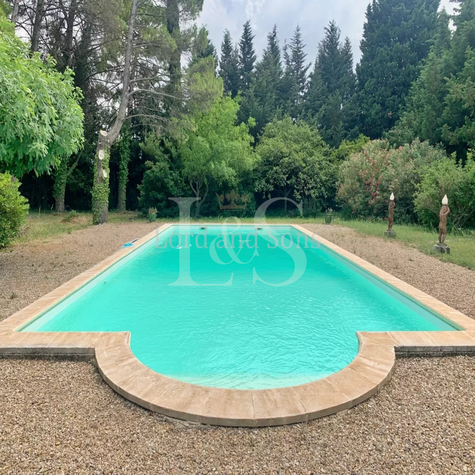La propriété est entourée d'un parc arboré de 2 hectares avec piscine, et il est possible d'acquérir 1 hectare supplémentaire.
