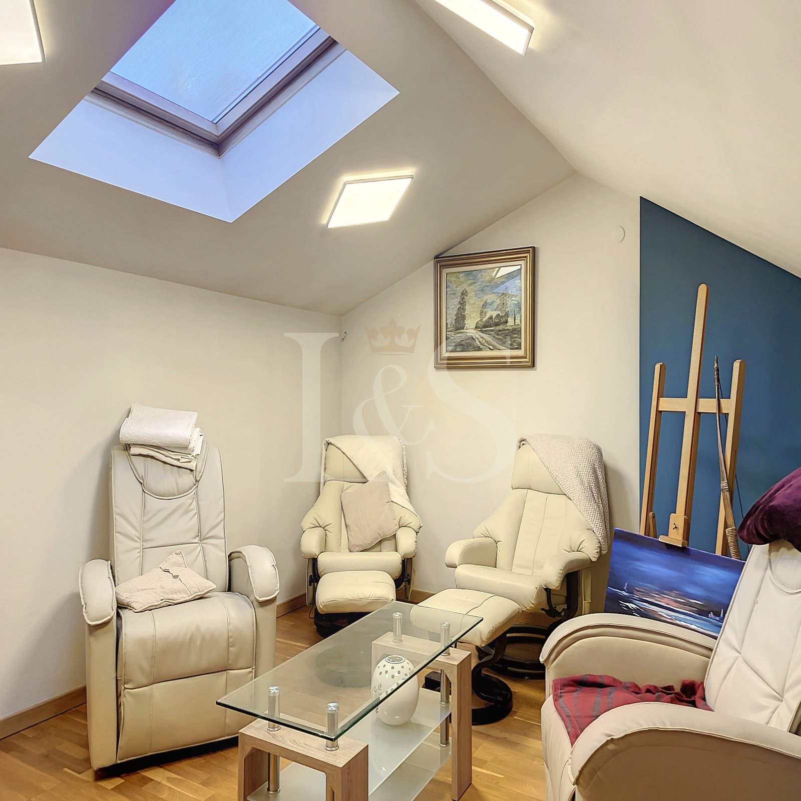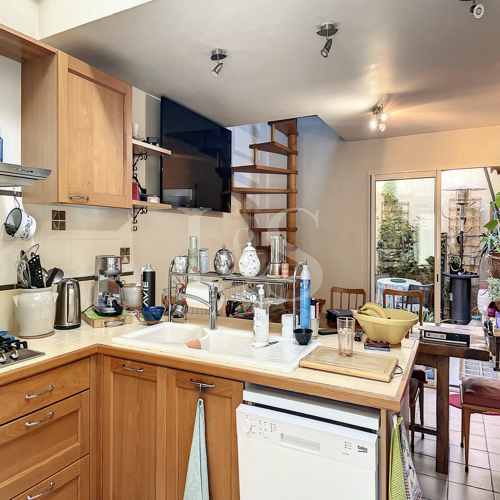 Répartie sur quatre niveaux, cette propriété vous séduira par ses espaces lumineux et bien agencés.La partie principale d'environ 150m² comprend quatre chambres, chacune équipée de sa propre salle d'eau, deux bureaux fonctionnels, un petit salon cosy et un séjour avec cuisine ouverte donnant sur un patio intérieur baigné de lumière naturelle.