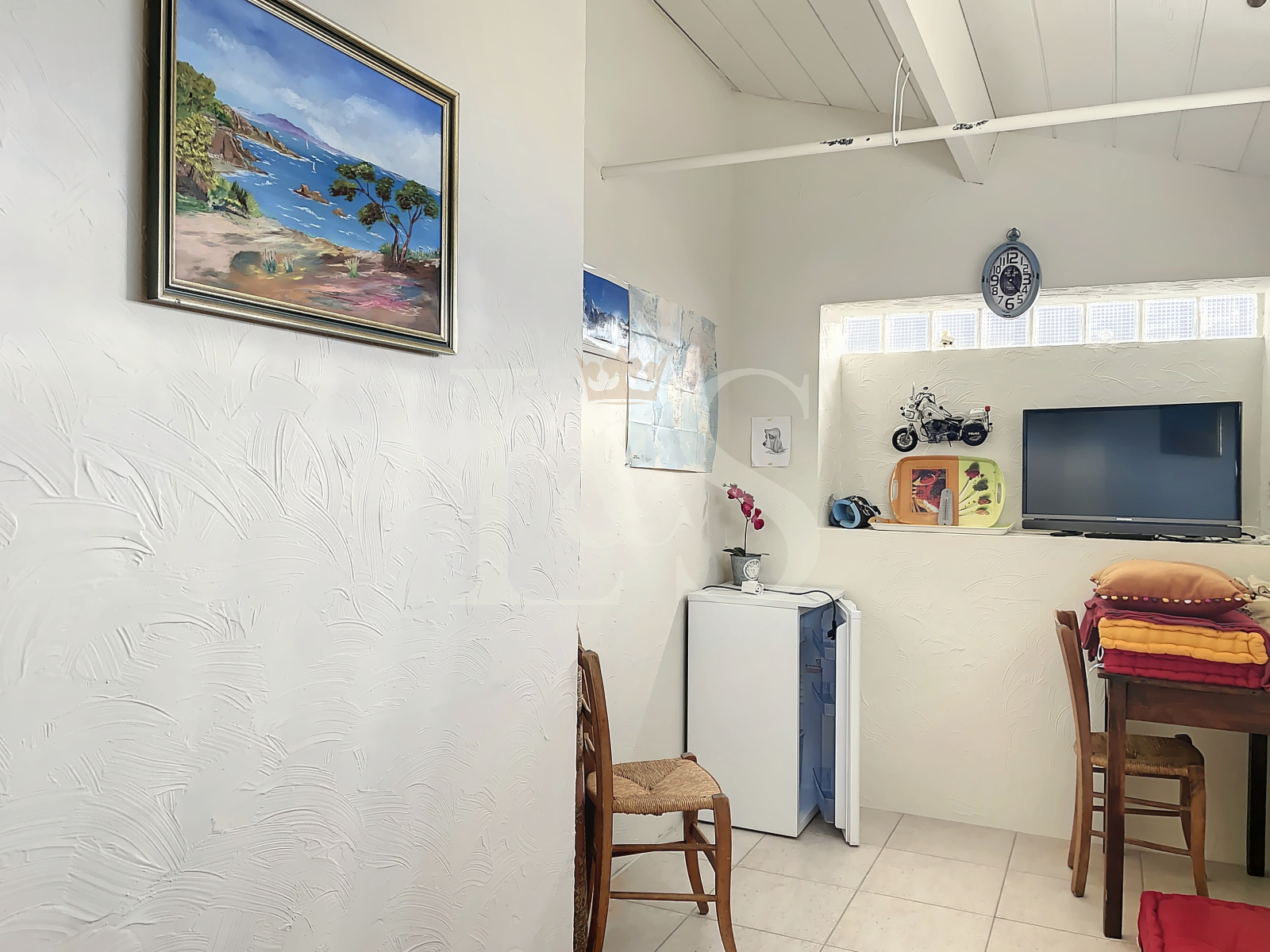 Les annexes, telles que l'atelier et le local technique à l'entrée, offrent des espaces supplémentaires parfaits pour le rangement ou le bricolage.