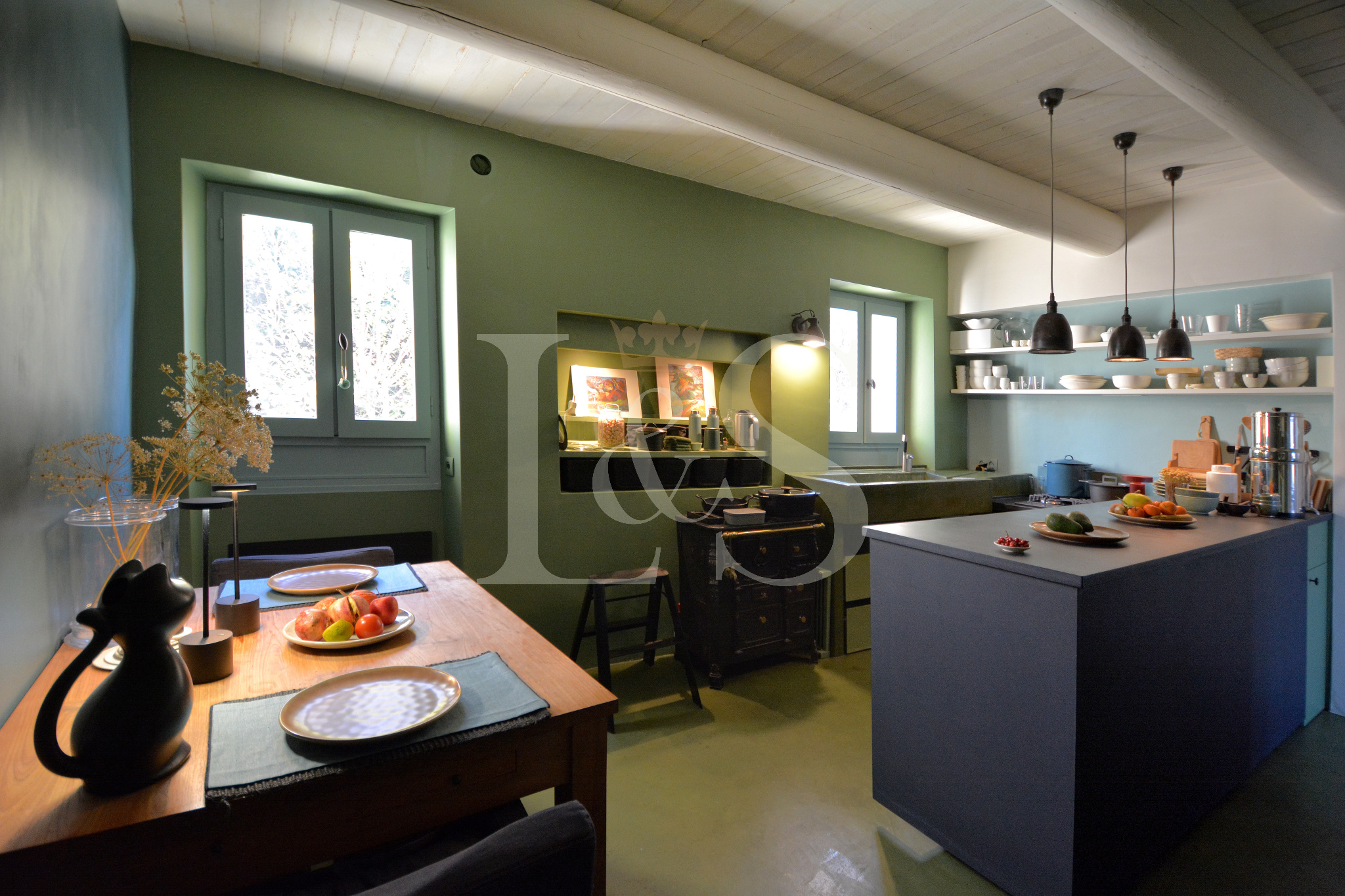 Provence, Vaucluse, sud Ventoux. Dans l’un des villages les plus recherchés du secteur, découvrez cette maison de village pleine de charme datant du 18ème siècle, entièrement rénovée, offrant une atmosphère unique et une vue imprenable sur les Dentelles de Montmirail et la campagne comtadine.