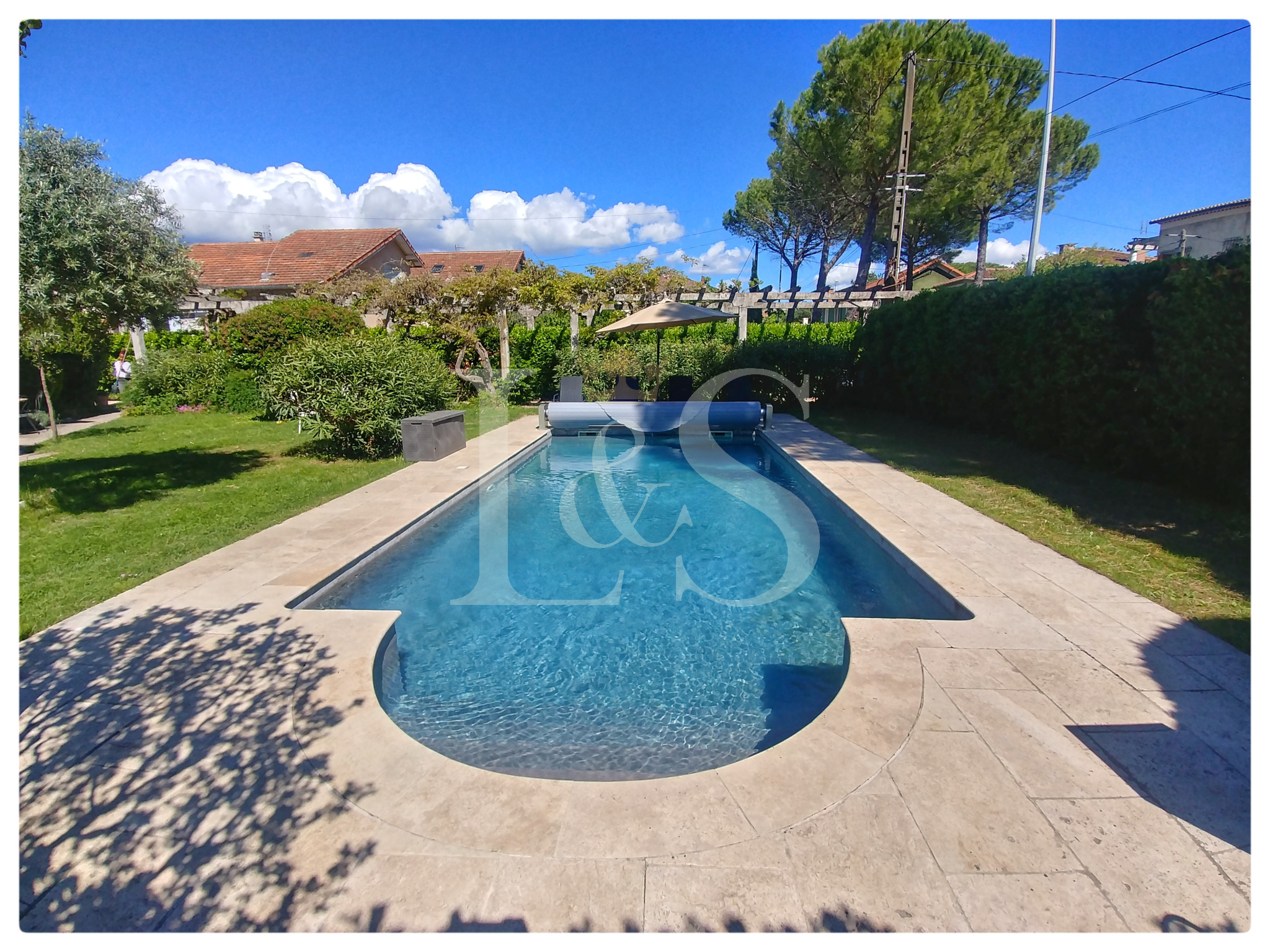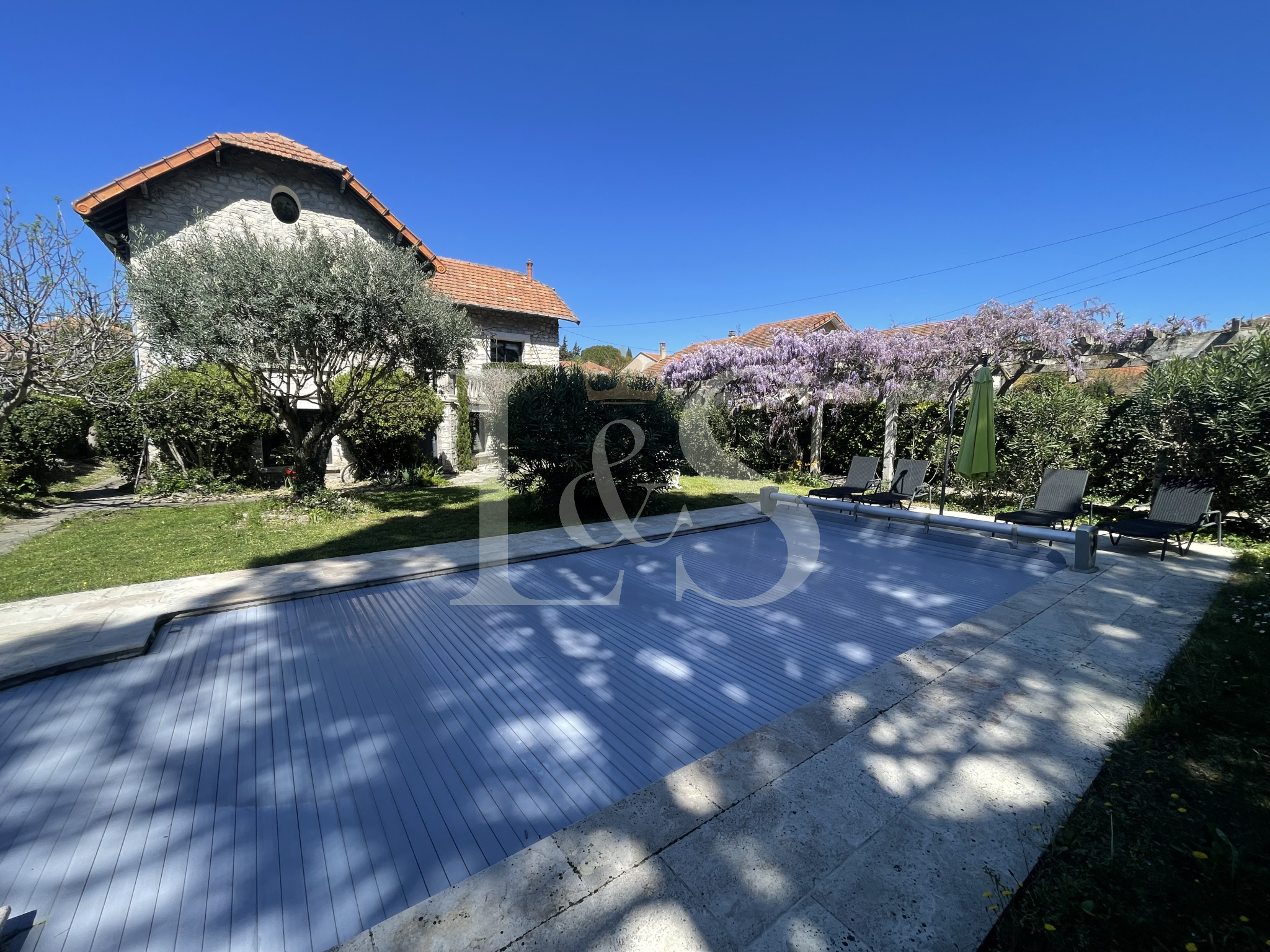 Au cœur de la ville, charmante maison des années 30, entièrement rénovée avec goût, située sur un terrain de 765 m² avec une agréable piscine.