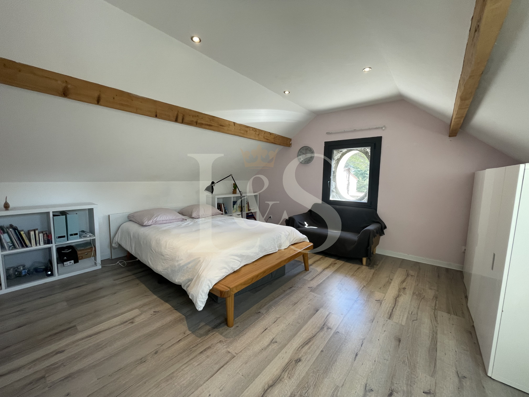 À l’étage, un salon baigné de lumière vous accueille, ainsi qu’une grande pièce à vivre avec cuisine équipée. Une chambre avec salle d’eau complète ce niveau, sublimé par de magnifiques carreaux de ciment au sol qui apportent tout son charme à la maison.