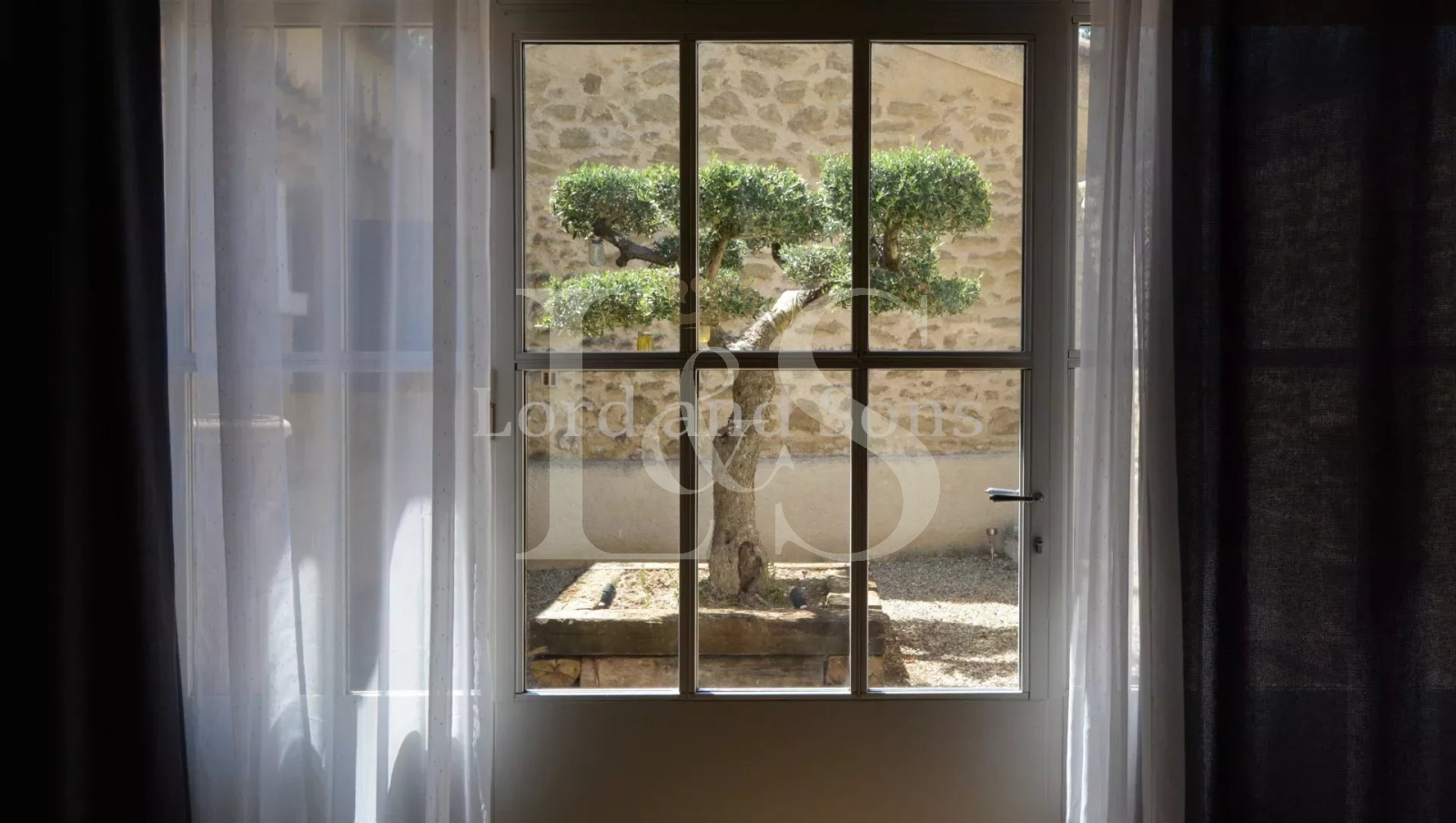 Cette propriété atypique et exceptionnelle offre une rénovation de haut niveau, située dans un environnement d'un calme absolu, à seulement 3 minutes des commerces, 6 minutes de l'autoroute A7 et 15 minutes du TGV Avignon.