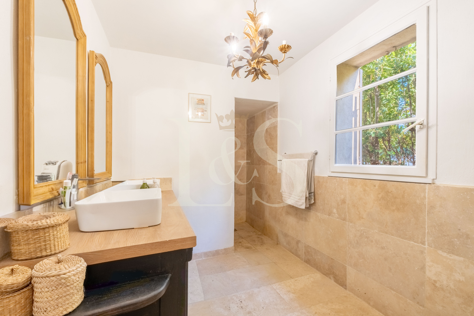 L’espace extérieur accueille de magnifiques pins parasols, des arbres fruitiers et des essences locales, avec arrosage automatique alimenté par forage. De nombreuses terrasses entourent la maison et une piscine de 10 x 5 m, légèrement en retrait, permet de profiter pleinement des journées ensoleillées.