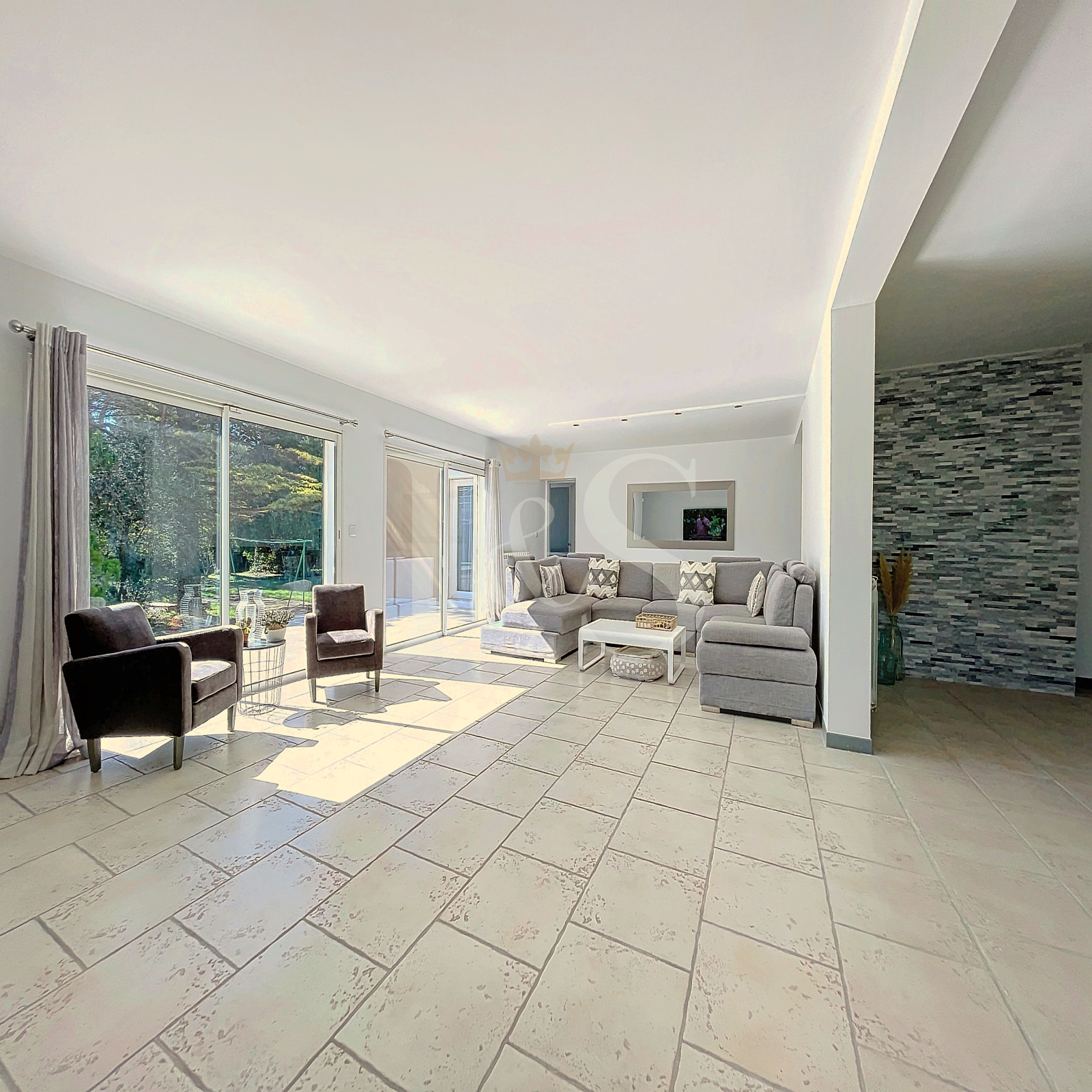 Elle dispose de 3 chambres dont une suite parentale avec salle d’eau et dressing, d’une seconde salle d’eau, 2 WC, cellier, buanderie et garage.