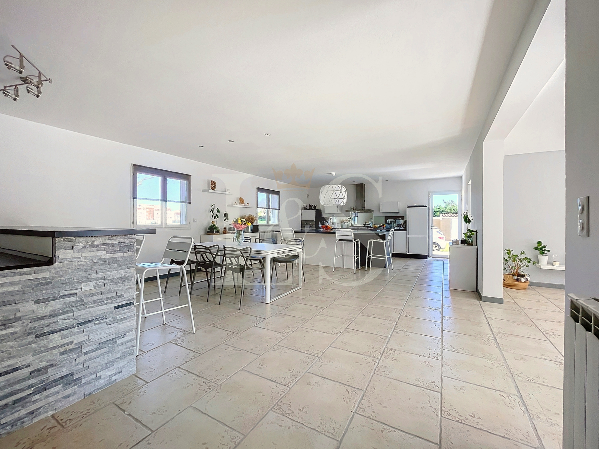 Dans un secteur calme et recherché, decouvrez cette villa récente de 130 m² qui offre une pièce de vie lumineuse de 60 m² avec cuisine ouverte, poêle à bois et baies vitrées donnant sur le jardin et la piscine.