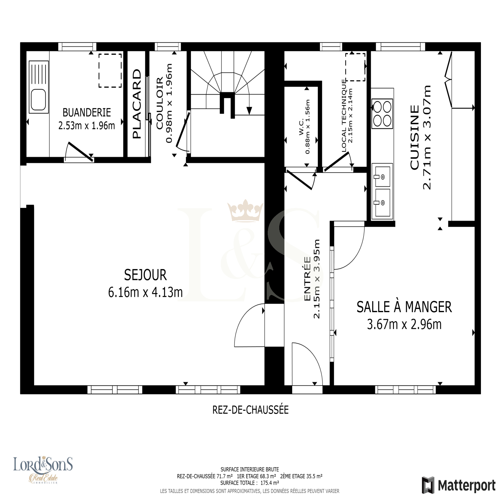 Le rez-de-chaussée accueille une belle cuisine entièrement équipée, ouverte sur une salle à manger conviviale et lumineuse. Un salon de 25 m², agrémenté d’un poêle à bois, invite à la détente dans une ambiance cosy. Une buanderie, un débarras, des WC indépendants ainsi qu’un garage de 22 m² complètent ce niveau.