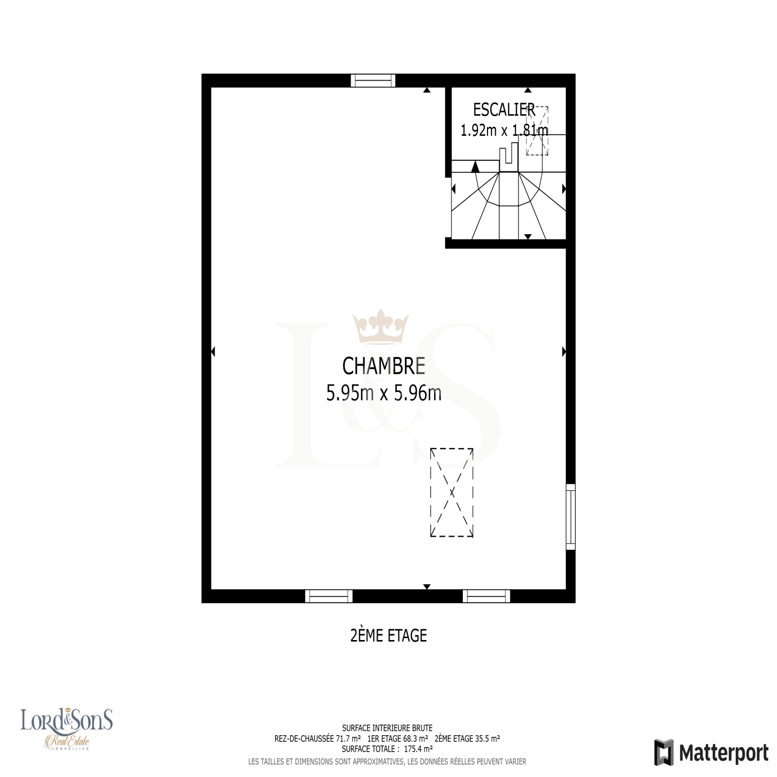 Le dernier niveau, d’une surface généreuse de plus de 35 m², offre de multiples possibilités d’aménagement : chambre supplémentaire, bureau ou salle de jeux.