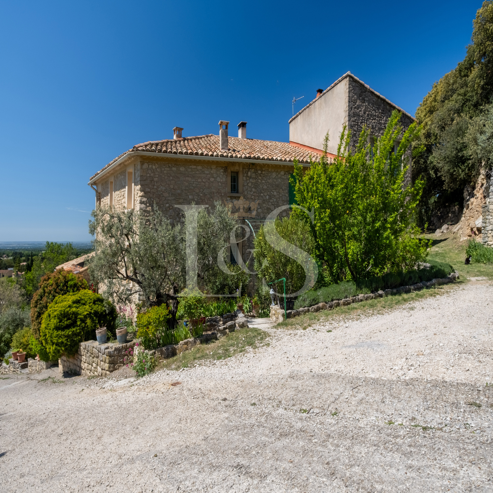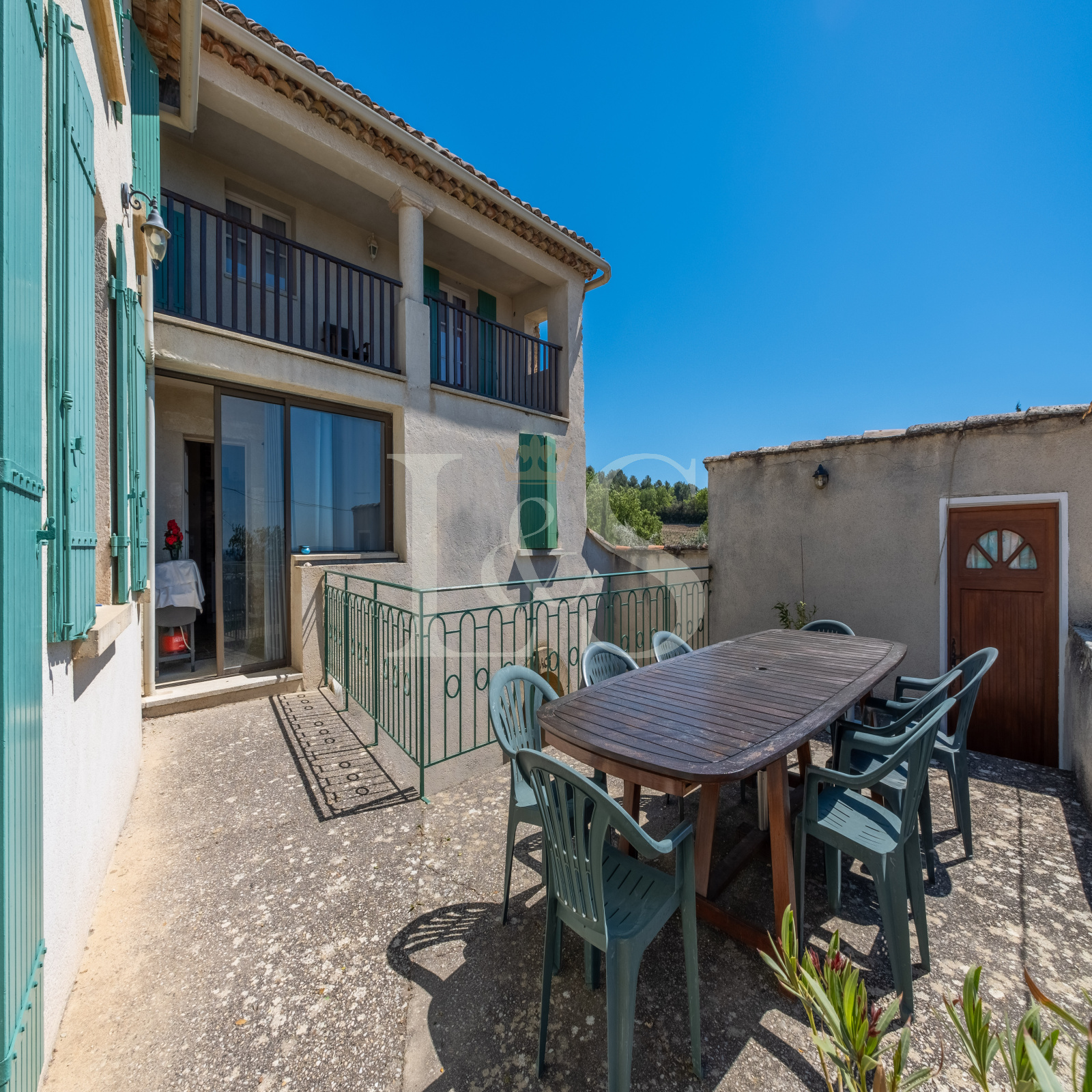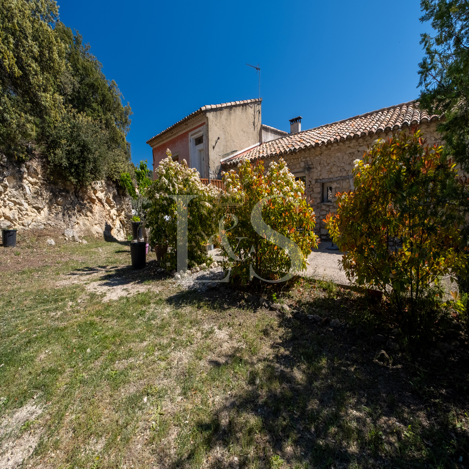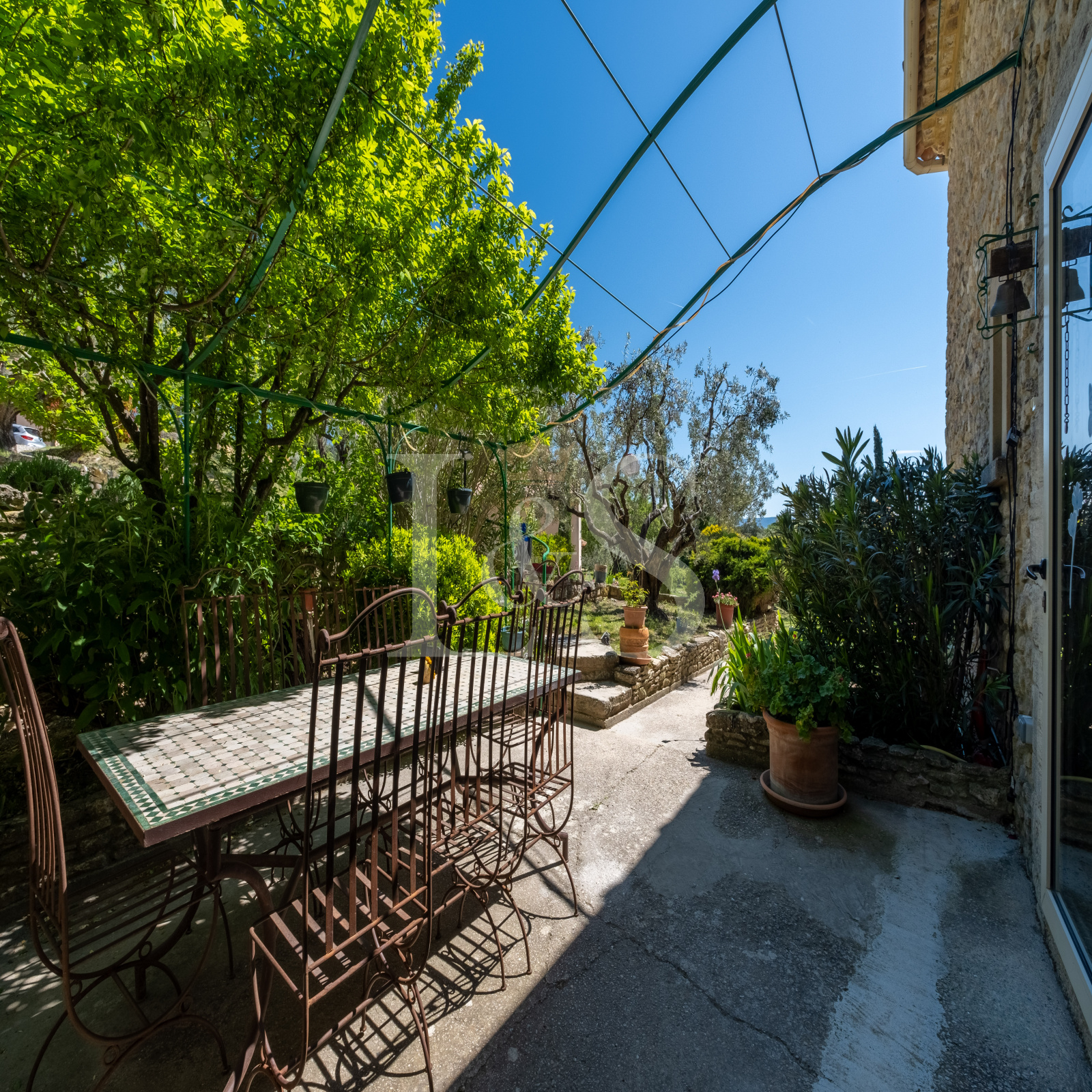 Édifiée sur un terrain d’environ 4 000 m², la bastide propose plusieurs terrasses ombragées et ensoleillées, parfaites pour profiter de la vie en Provence.