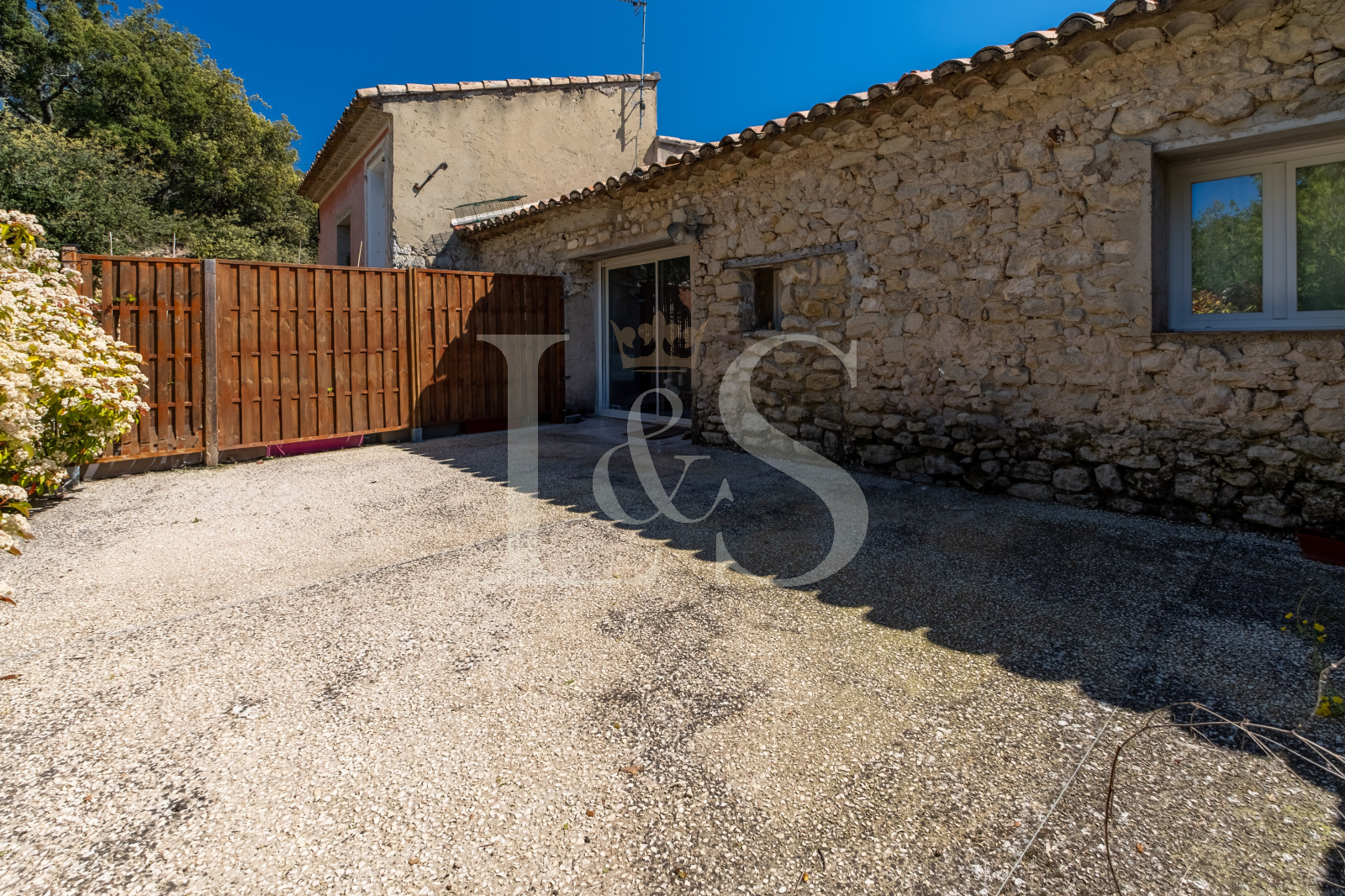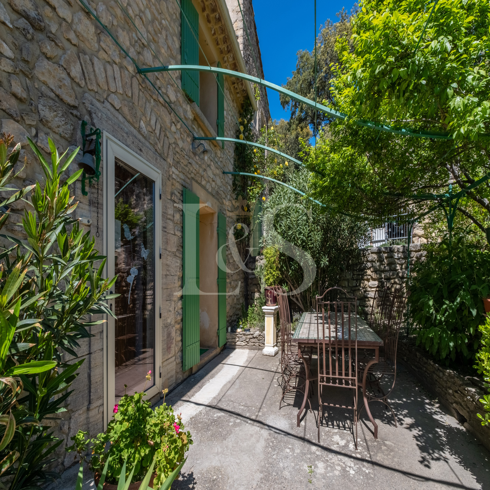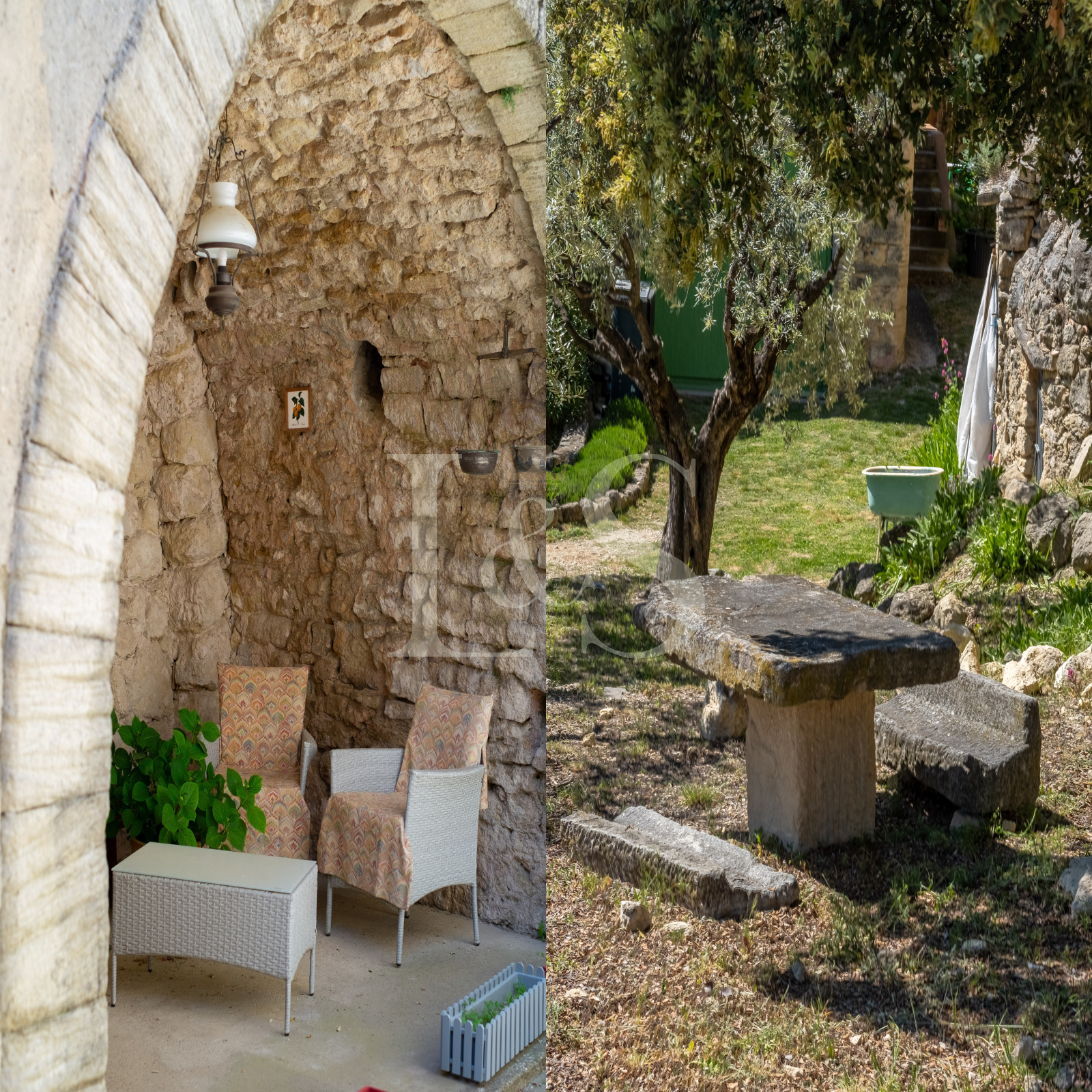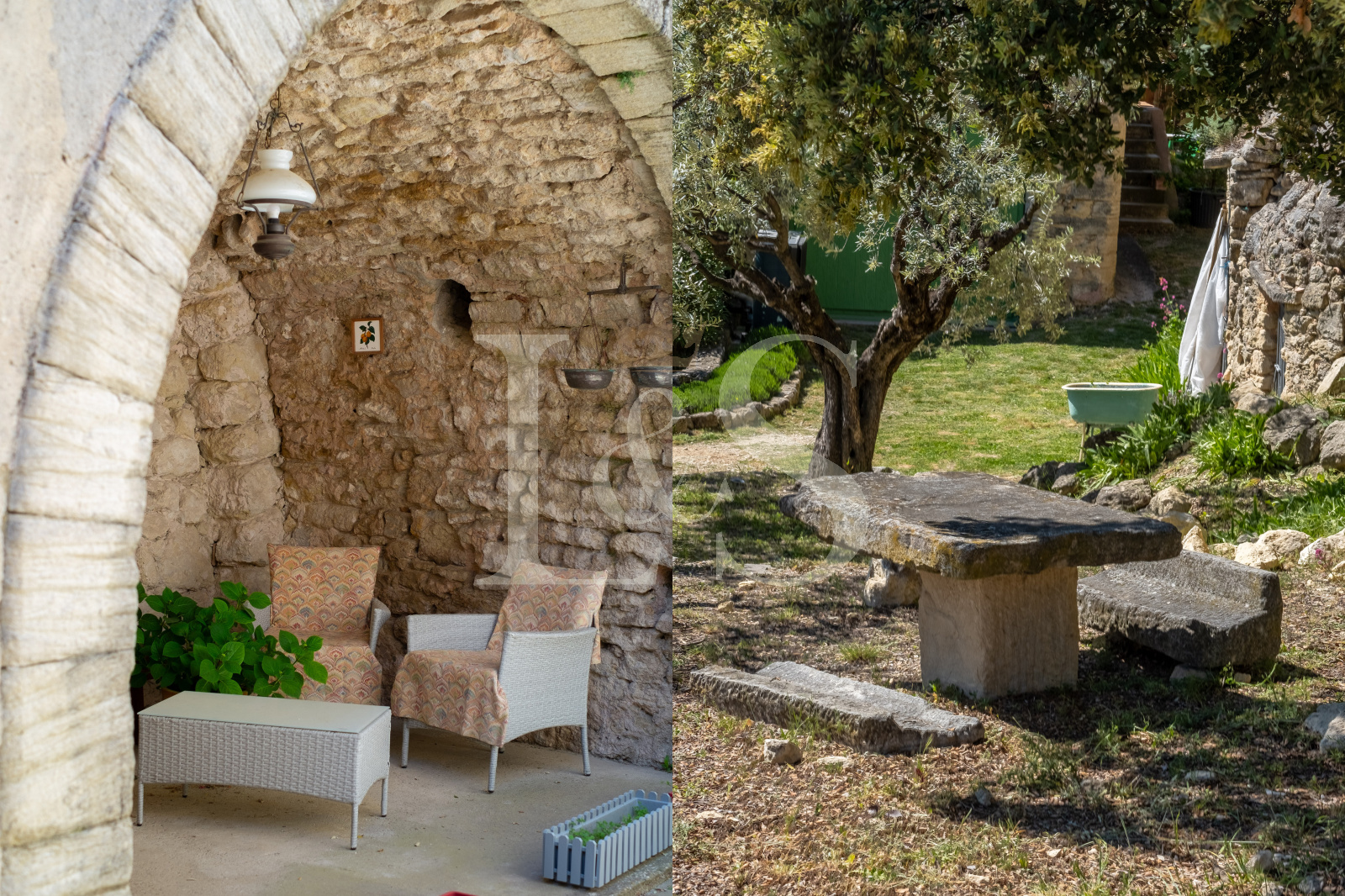 Édifiée sur un terrain d’environ 4 000 m², la bastide propose plusieurs terrasses ombragées et ensoleillées, parfaites pour profiter de la vie en Provence.