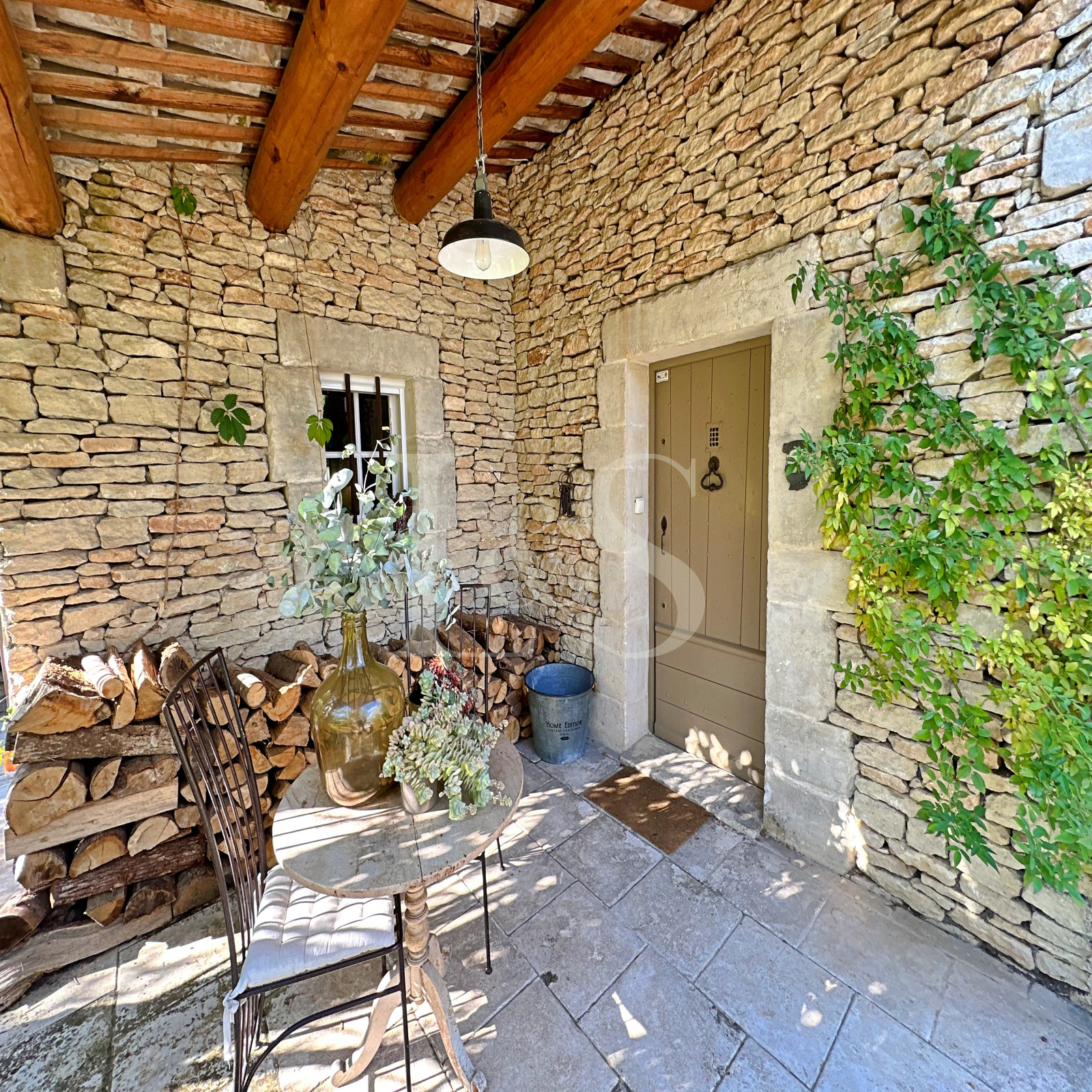 Édifiée sur un terrain arboré de 2 093 m², elle offre un cadre de vie exceptionnel avec une vue imprenable sur le Mont Ventoux. La pierre de Ménerbes, utilisée exclusivement pour la construction, confère à cette maison un cachet inégalé, offrant à ses occupants une atmosphère chaleureuse et raffinée.
