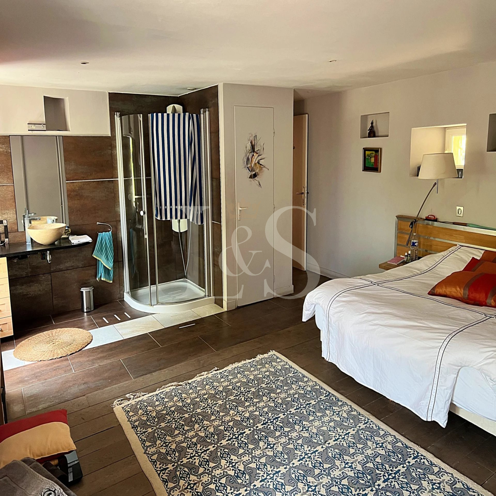 À quelques minutes de Grignan, ce superbe mas du XVᵉ siècle d’environ 320 m² offre un cadre exceptionnel en pleine nature. Il se compose d’une vaste salle de réception de 95 m², d’une cuisine séparée entièrement équipée, ainsi que de cinq chambres, chacune avec sa salle d’eau privative.