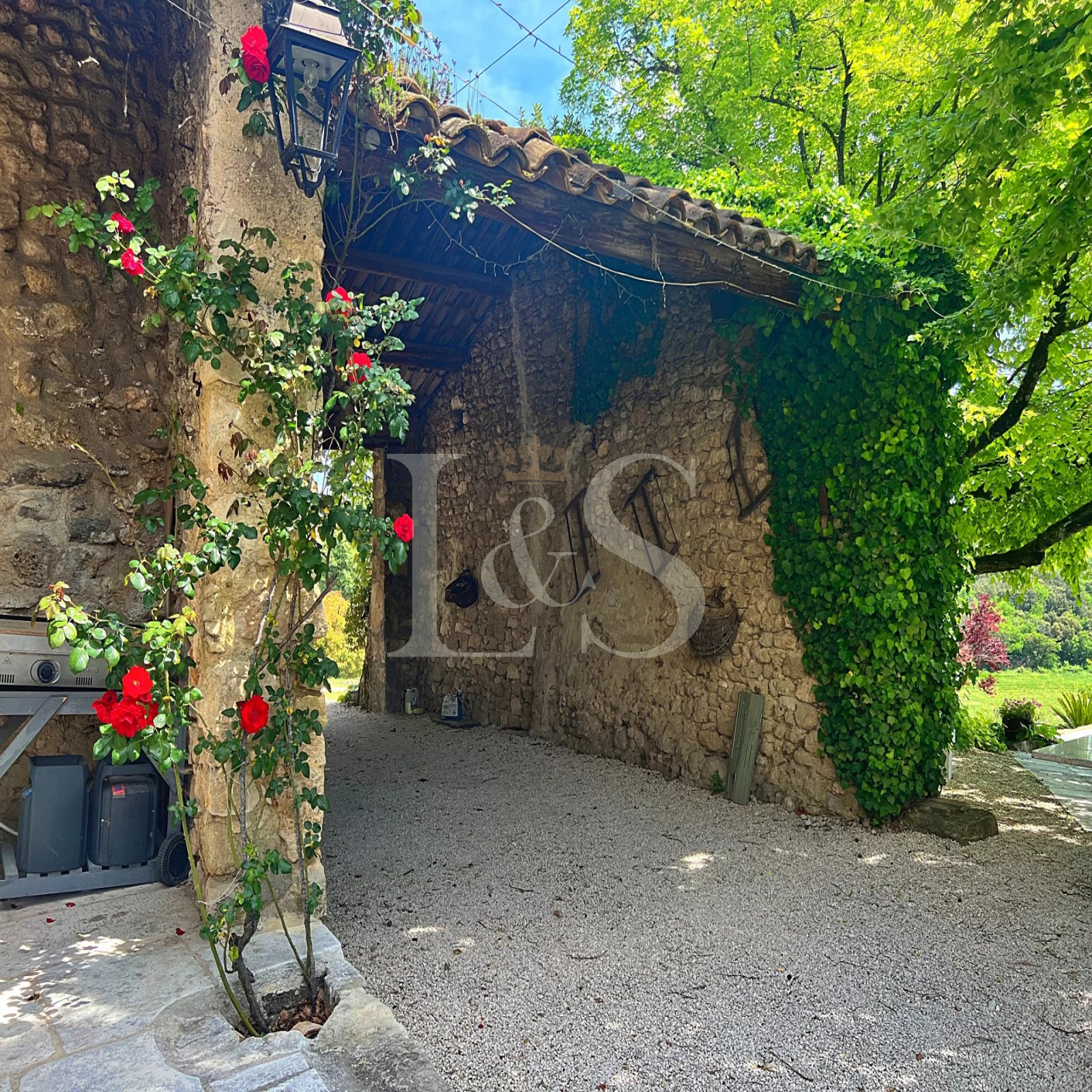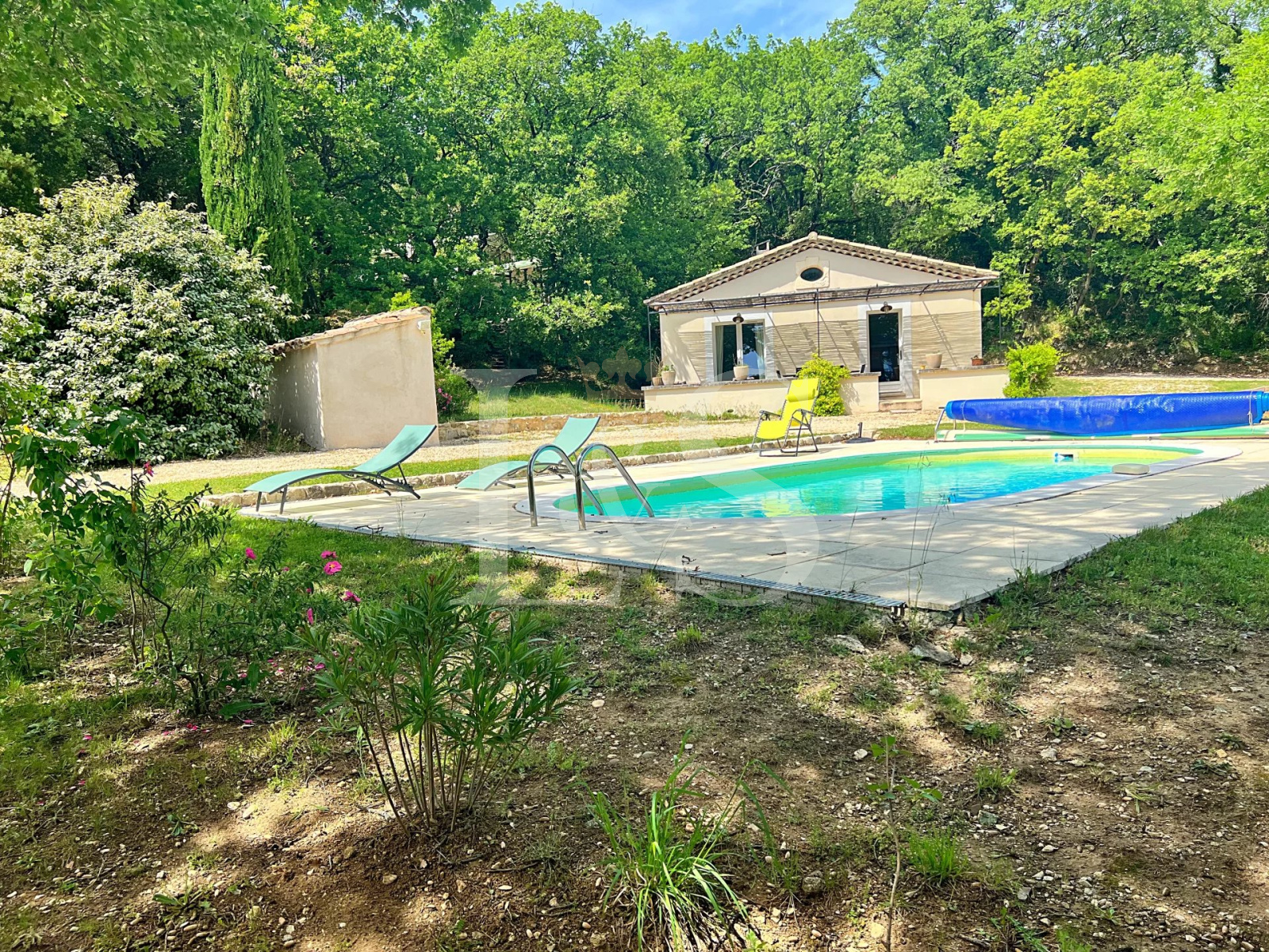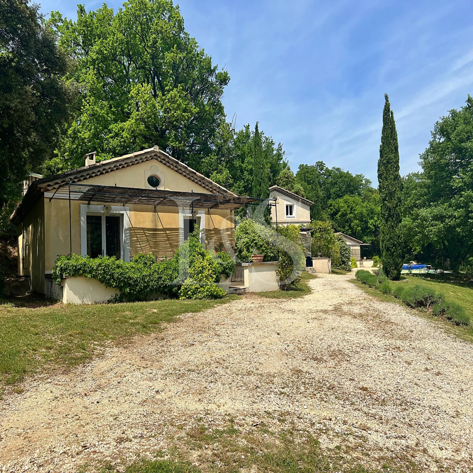 L’extérieur séduit par sa piscine offrant une vue imprenable sur les champs de lavande environnants, son grand garage et son abri voiture.