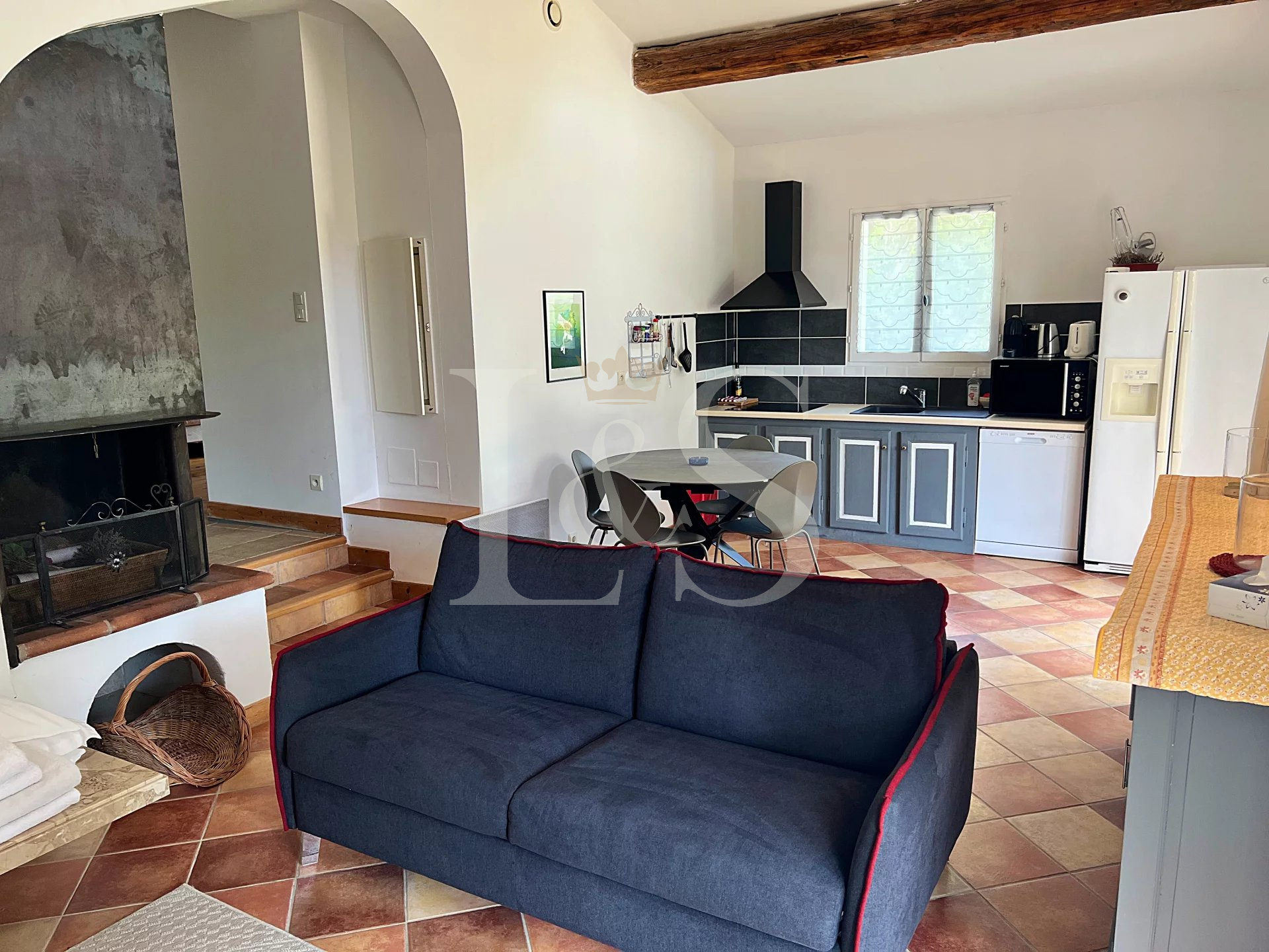 séjour/cuisine équipée, 2 chambres, salle de douche et WC