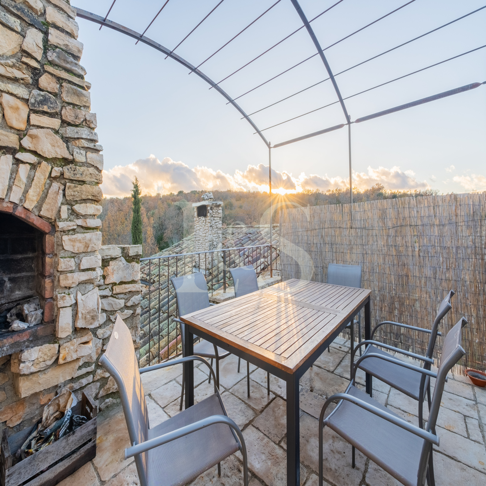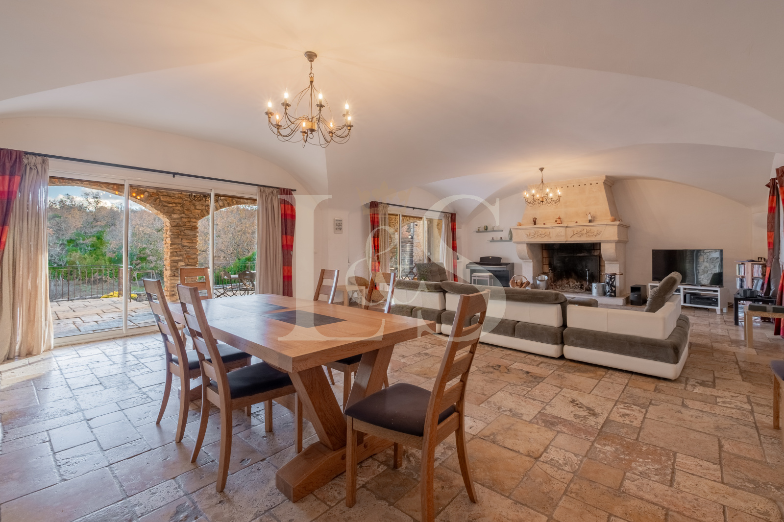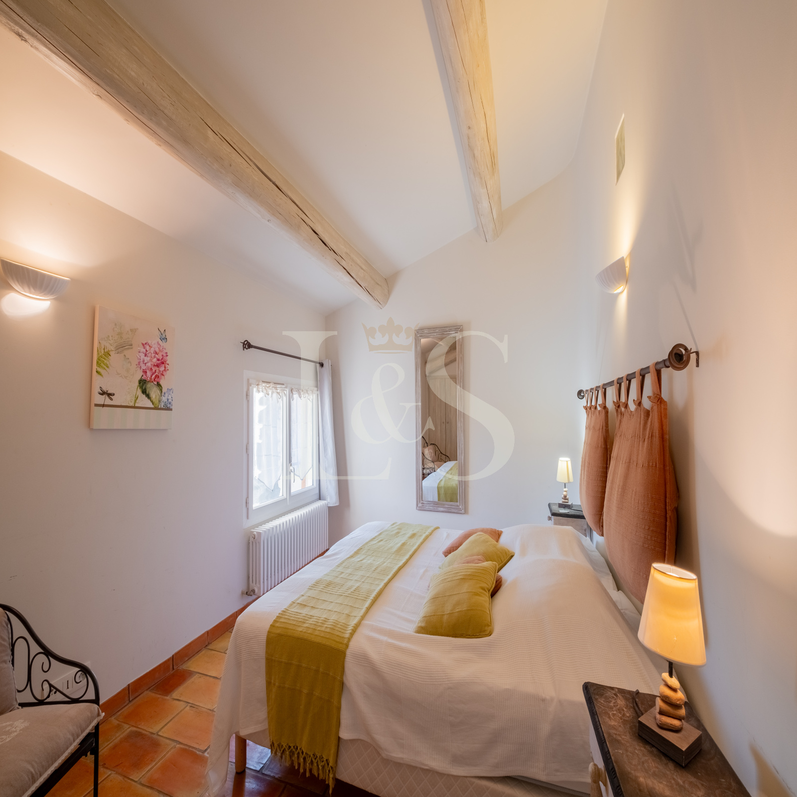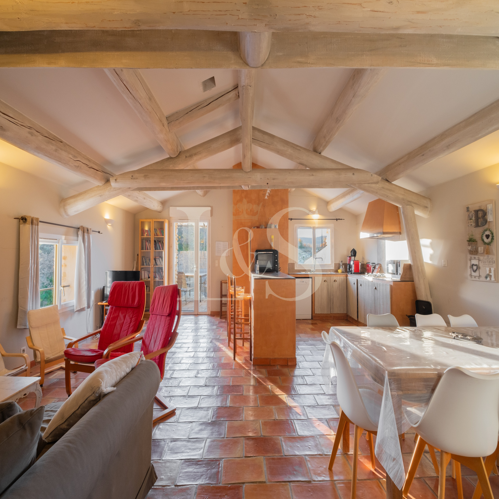 La bastide principale se distingue par un séjour lumineux de 82 m², agrémenté de baies vitrées et d’une cheminée en pierres de Banon, créant une ambiance chaleureuse. Une vaste cuisine de 32 m², équipée d’un piano de cuisson à gaz et d’un four à pizza, complète cet espace convivial. Cette partie de la maison inclut également une chambre, un bureau, une salle de bains avec WC, et un dressing.
