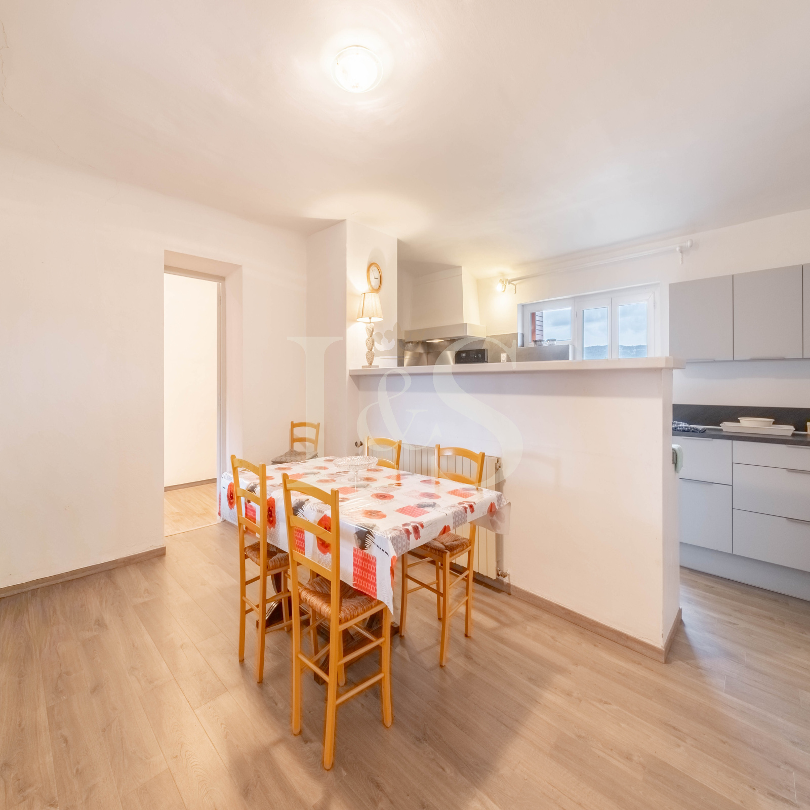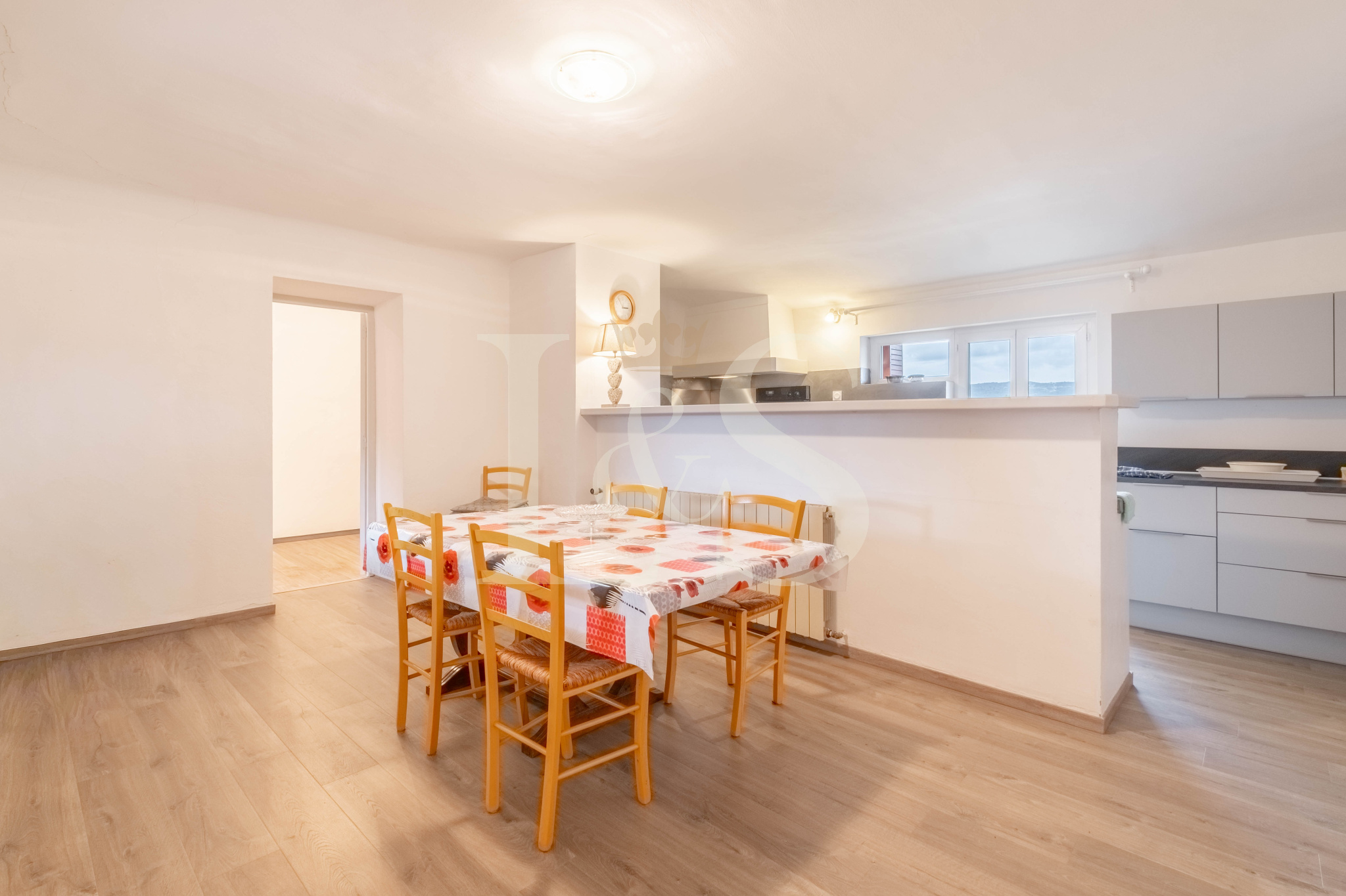 Cuisine, Salon/Séjour, deux chambres, salle d'eau, toilette