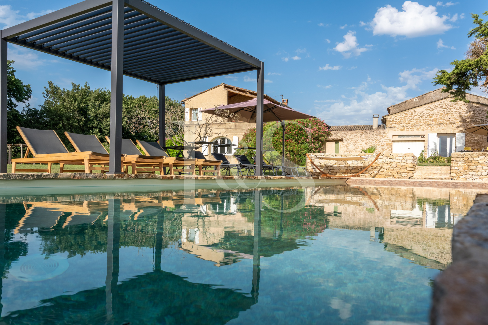 Le domaine se compose de deux habitations distinctes (compteurs EDF et Suez séparés), implantées sur un terrain entièrement clôturé d’environ 7 800 m², avec piscine au chlore 13 m x 4 m en PVC armé et forage pour l’arrosage du jardin et l’alimentation de la piscine.