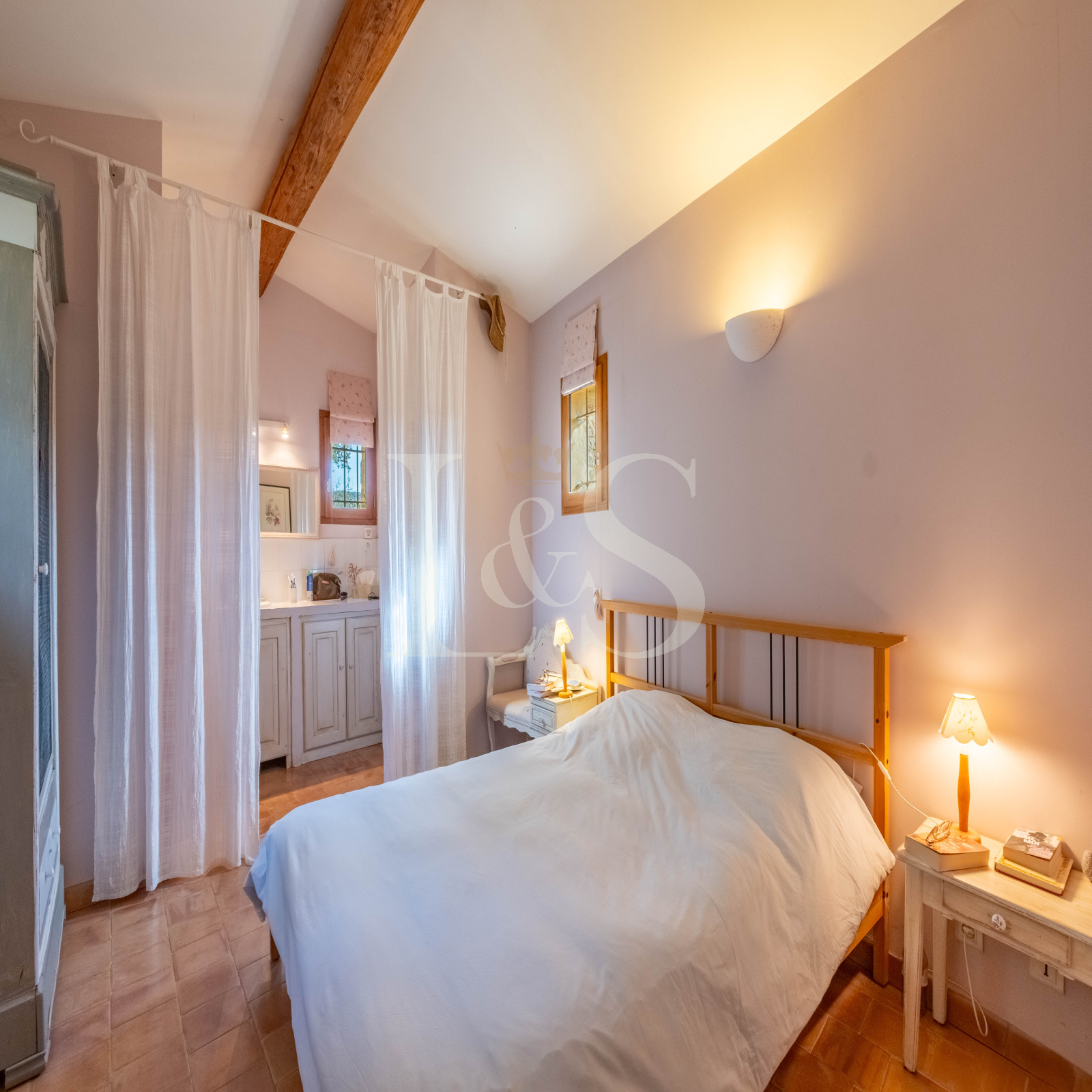 Le mas principal en pierre, d’environ 206 m², se compose d’une cuisine, d’un salon-séjour lumineux, et de quatre chambres en suite.