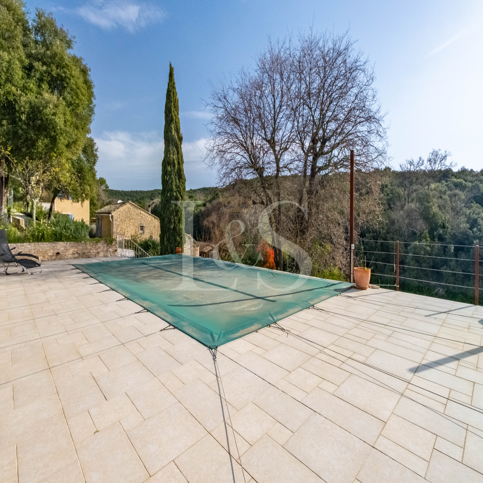 Une superbe piscine bordée d’oliviers, avec son solarium, offre une vue imprenable sur le vallon et les vignes environnantes.