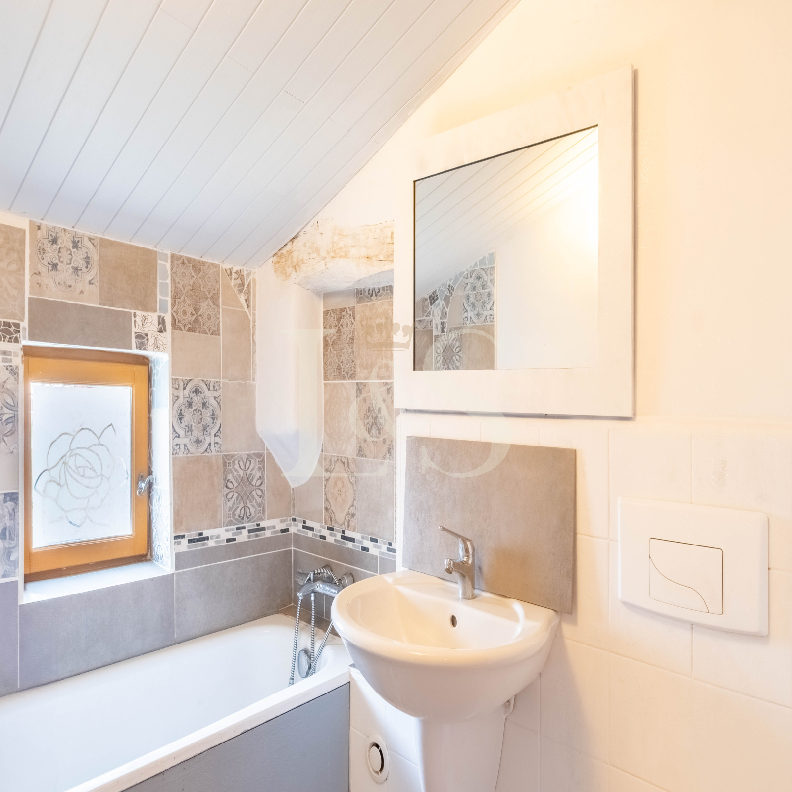 Le premier étage dévoile un salon chaleureux agrémenté d’un poêle à bois et donnant accès à une terrasse tropézienne, offrant une vue dégagée sur les environs. On y trouve également une chambre avec salle de bains, une salle de bains indépendante supplémentaire, ainsi qu’une grande chambre prolongée par une véranda/jardin d’hiver.