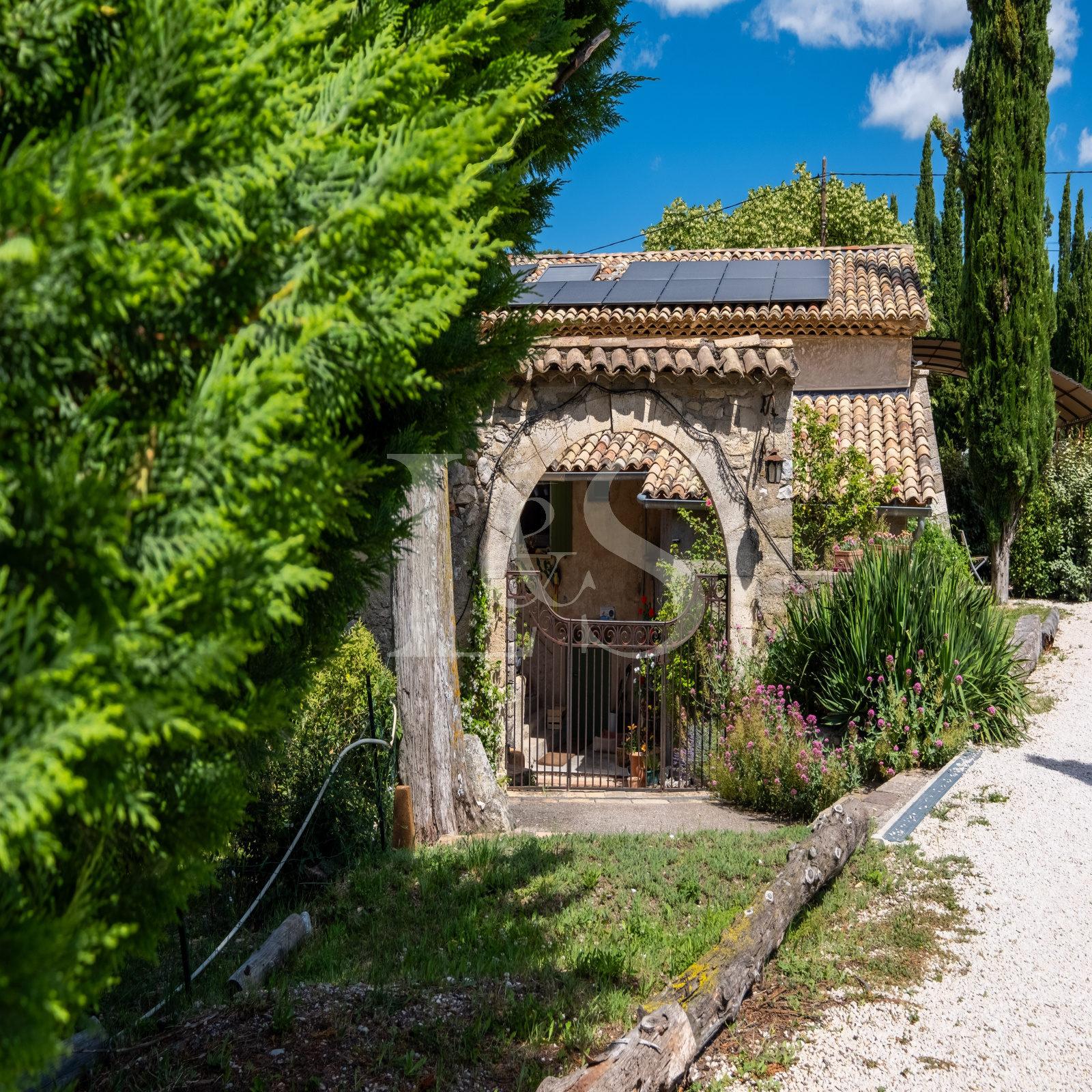 À l'extérieur, vous pourrez profiter d'une terrasse et d’un grand jardin exposé au soleil de Provence, d’un potager, d’une mare, de deux sources, ainsi que de 20 panneaux solaires avec un contrat de revente.